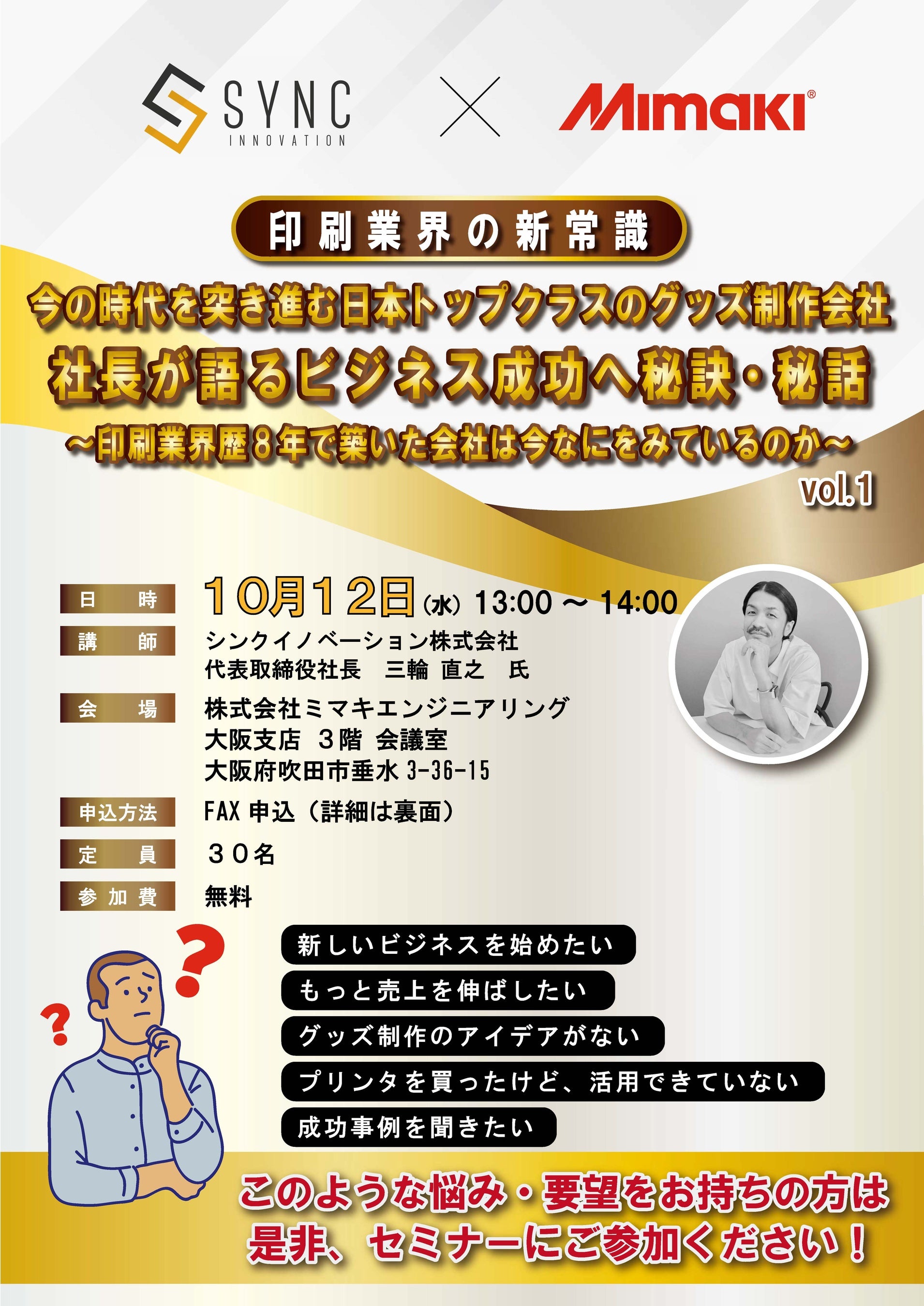 ㈱ミマキエンジニアリング大阪支店にて代表取締役による無料セミナーを開催いたします!