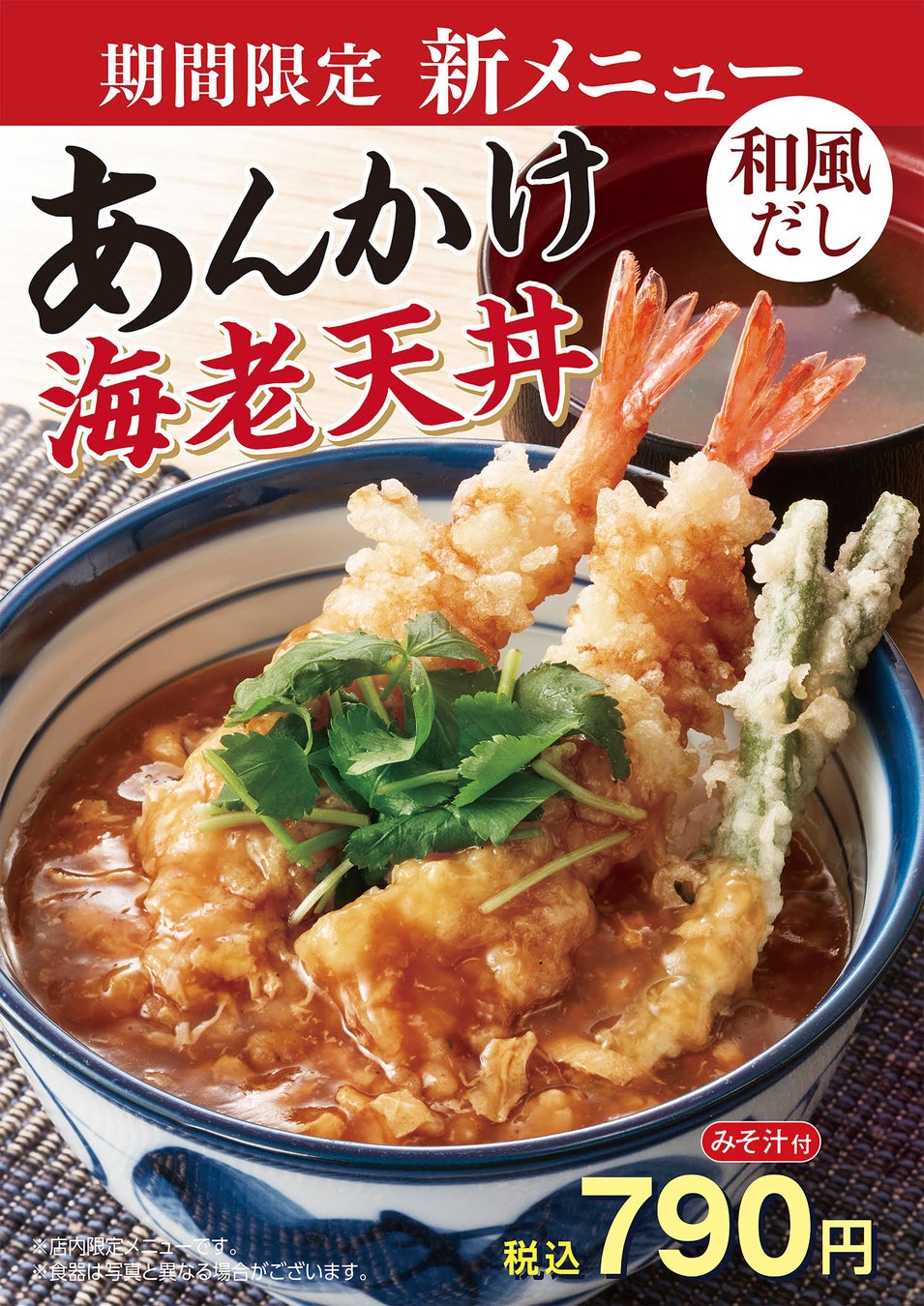 天丼・天ぷら専門店「天丼てんや」は、「てんやのあったかフェア」と題し、「天丼てんや」初の特製和風あんを使用した『あんかけ海老天丼』と、半熟食感の玉子で食べる『とろっと玉子の海老天丼』を、2月14日(月)~3月31日(木)の期間・店舗限定で販売いたします。