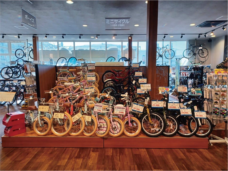 自転車の購入だけでなく、空気入れや点検などのメンテナンスから修理、不要な自転車の処分など、自転車にまつわるサービスを幅広く提供しております。