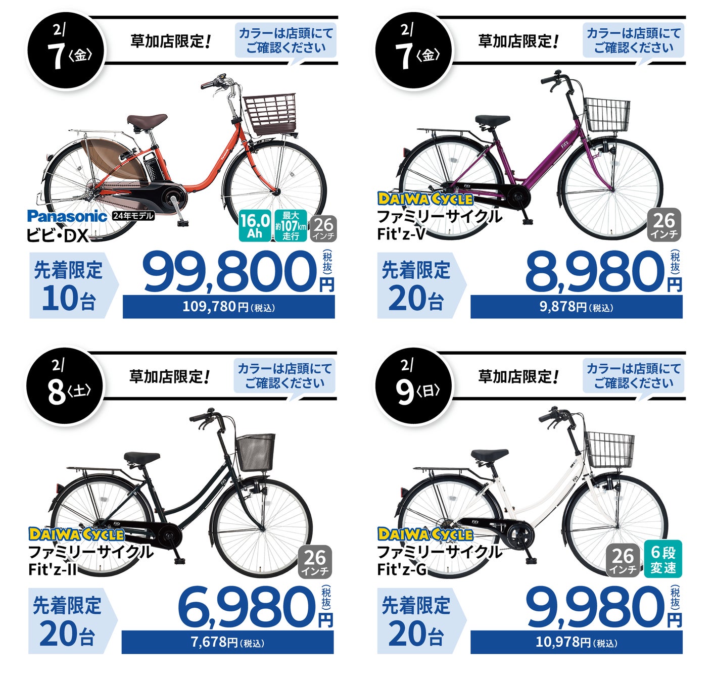 ~台数限定で自転車が7,678円!近隣2店舗にて協賛セール実施~