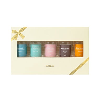 大人気の5つの香りを試せるチャンス!mercyu(メルシーユー)から「オフィシャルストア限定 Nordic Collection ミニリードディフューザー5本セット」新登場。