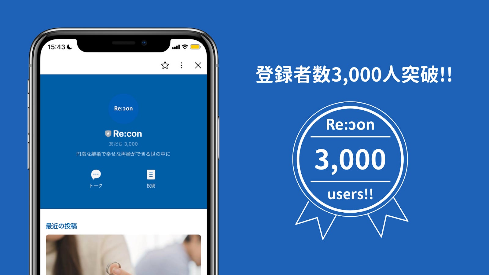 離婚テックサービス「Re:con(リコン)」のLINE登録者数が6か月で3,000人を突破!【株式会社WonderSpace】
