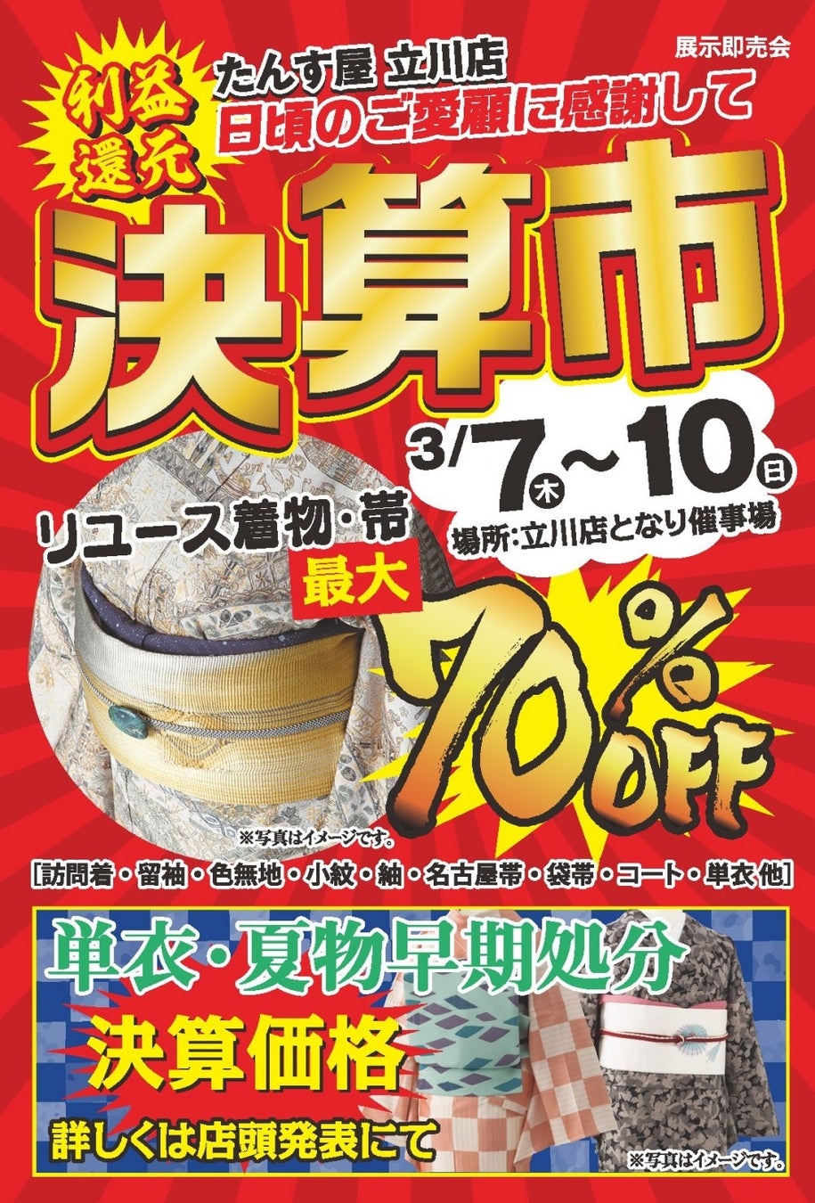 2024年3月7日(木)から3月10日(日)までの4日間、たんす屋立川店で「決算市」開催