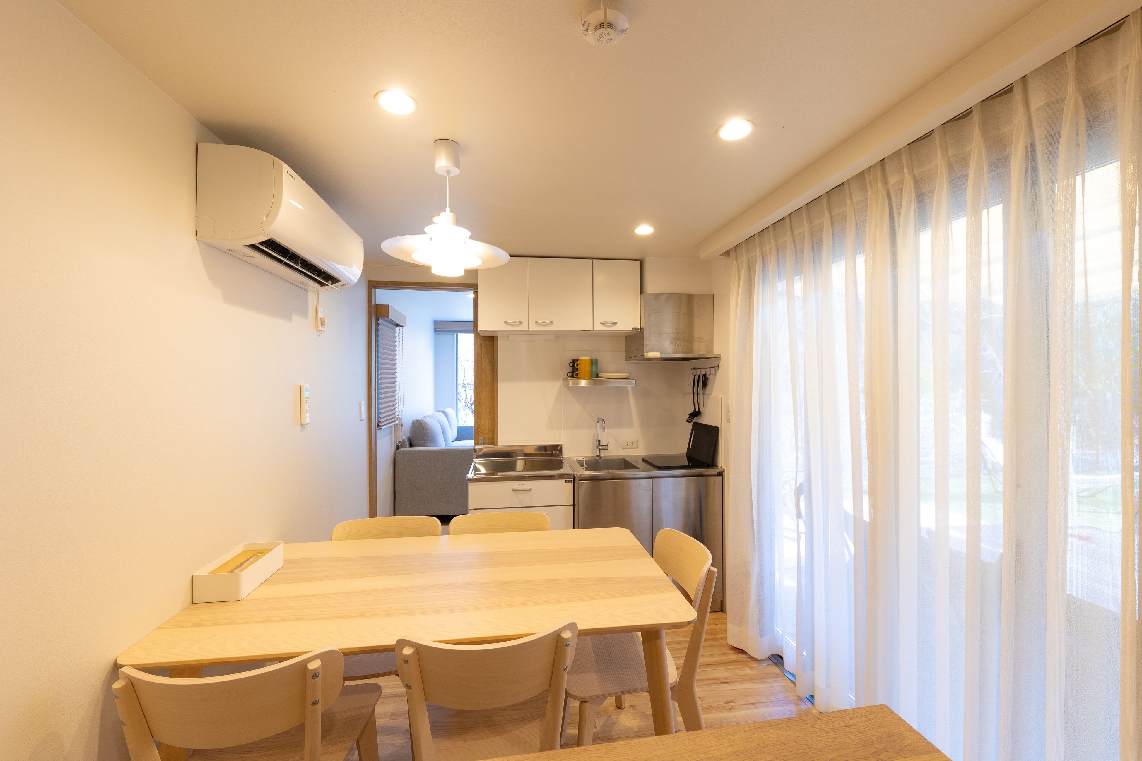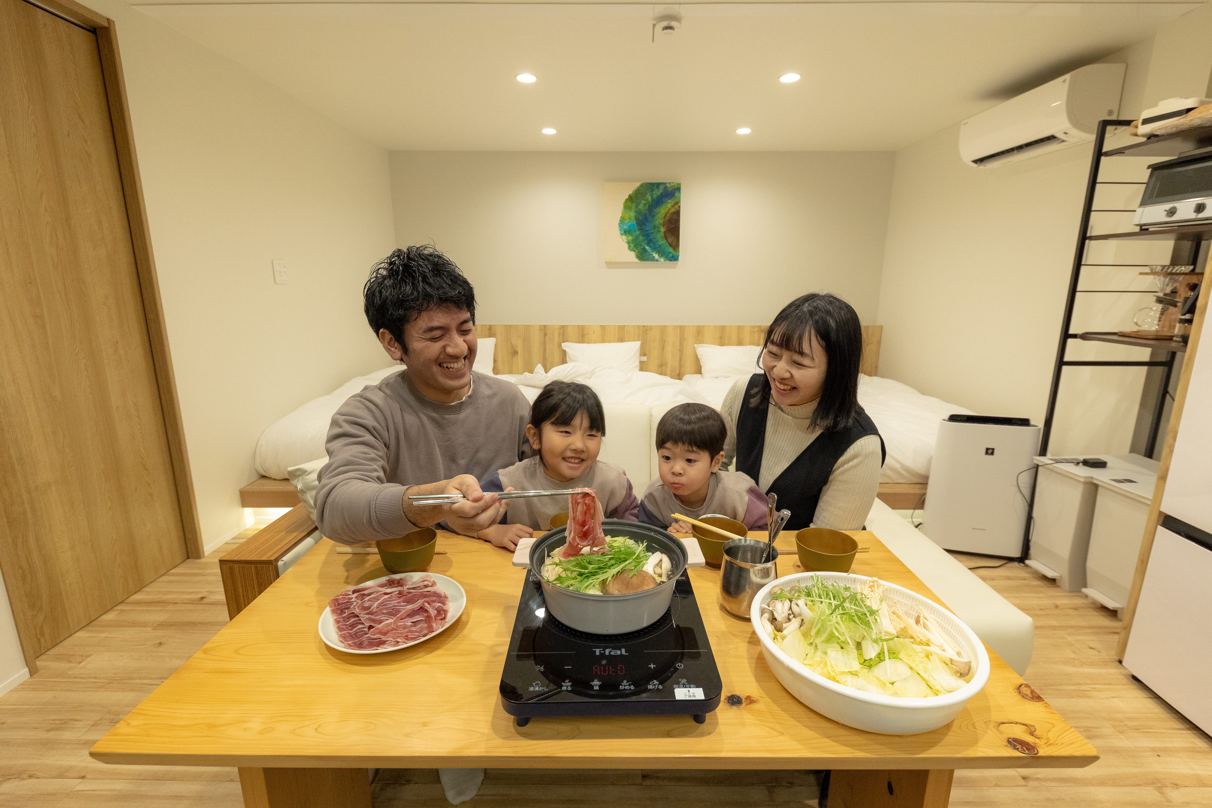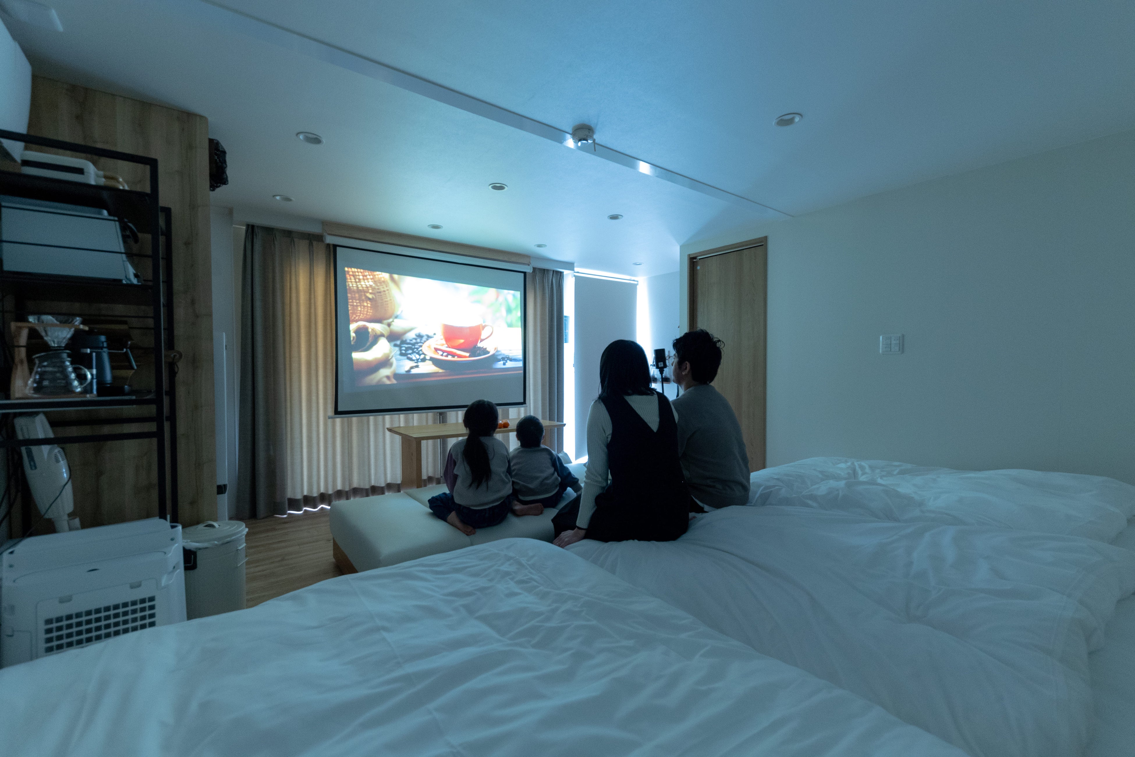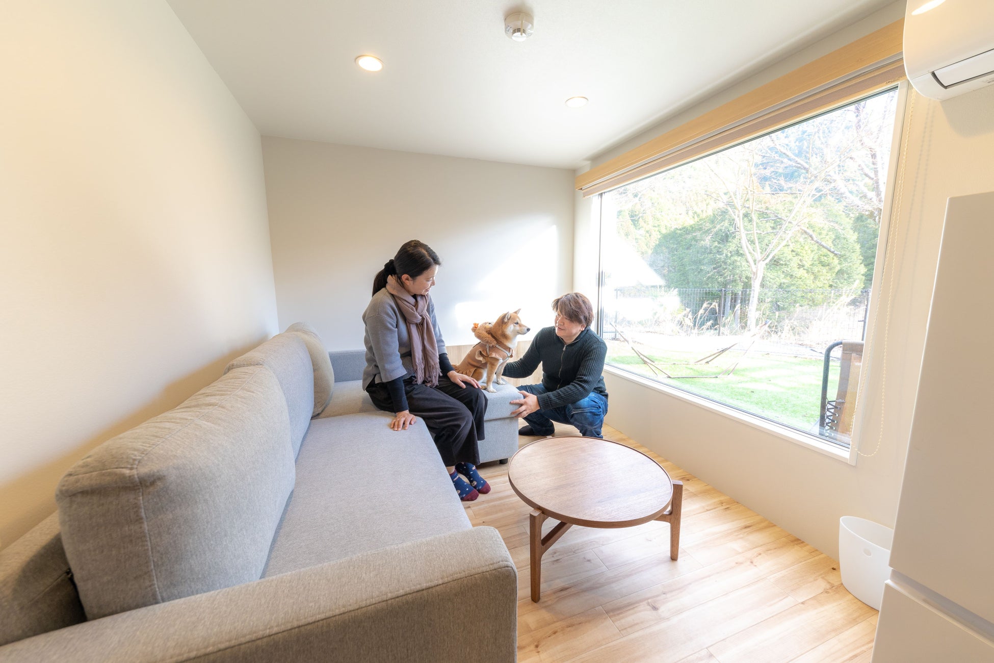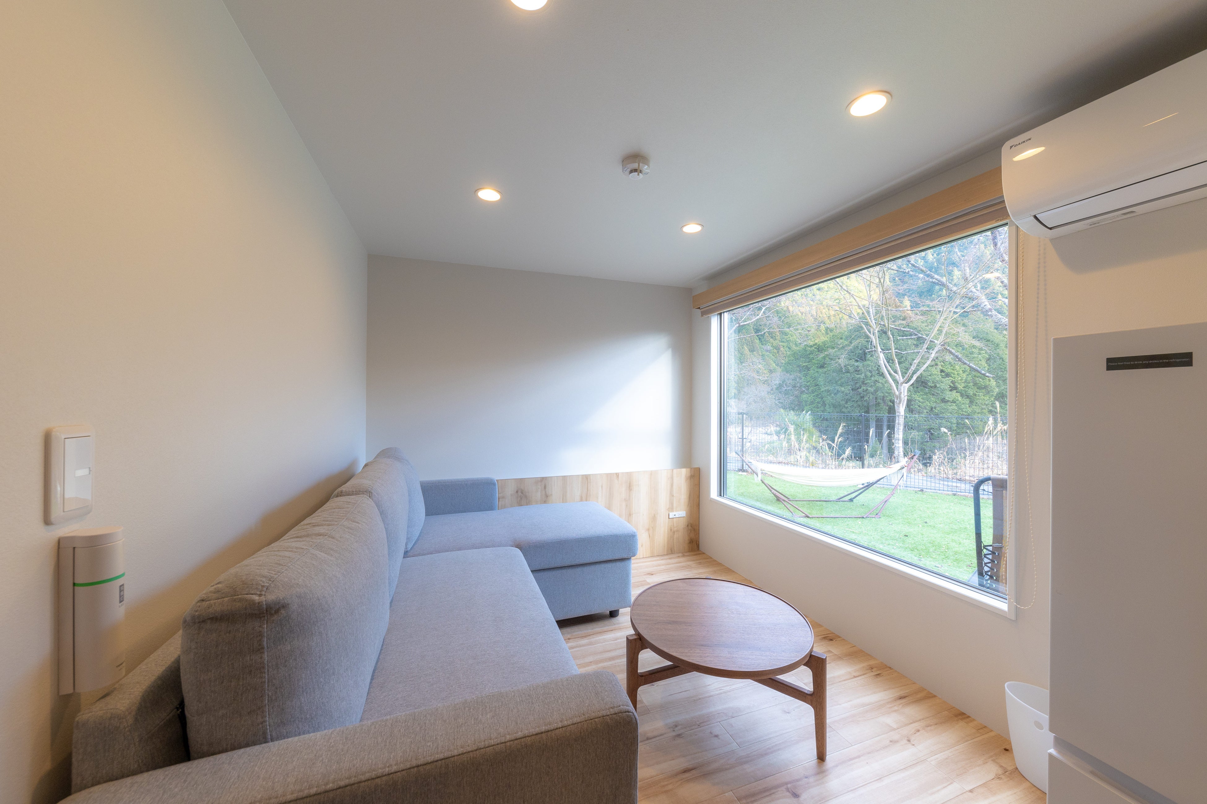 ファミリールームはSEN.RETREAT CHIKATSUYUで最も大きい客室であり、犬も一緒に宿泊できる仕様となっていることから、2022年4月の開業以来、多くのお客様にご利用いただいてきました。しかし、お客様から「室内でくつろぐスペースが狭い」「雨が降った際に室内でゆっくり過ごすのが難しい」といったお声を複数いただいたことから、家具の入れ替えや配置替えをこの度行いました。