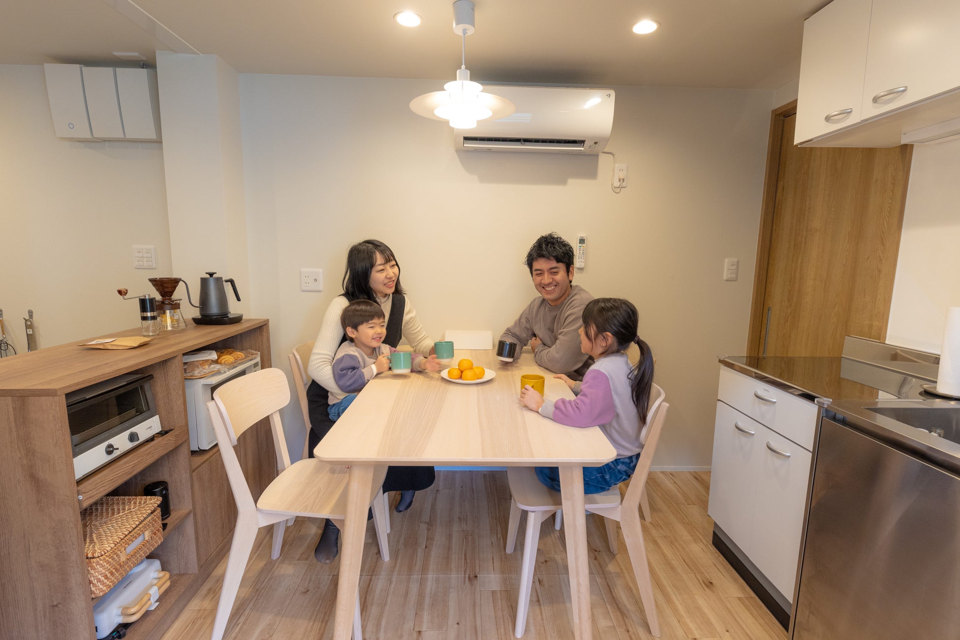 ローテーブルしかなかったリビングスペースに、食事のしやすい大きなテーブルを入れたほか、2つある寝室のうち1つにダブルベッドを置いていたところ、ソファーベッドを設置したことで、ゆとりのある落ち着いた空間に生まれ変わらせました。