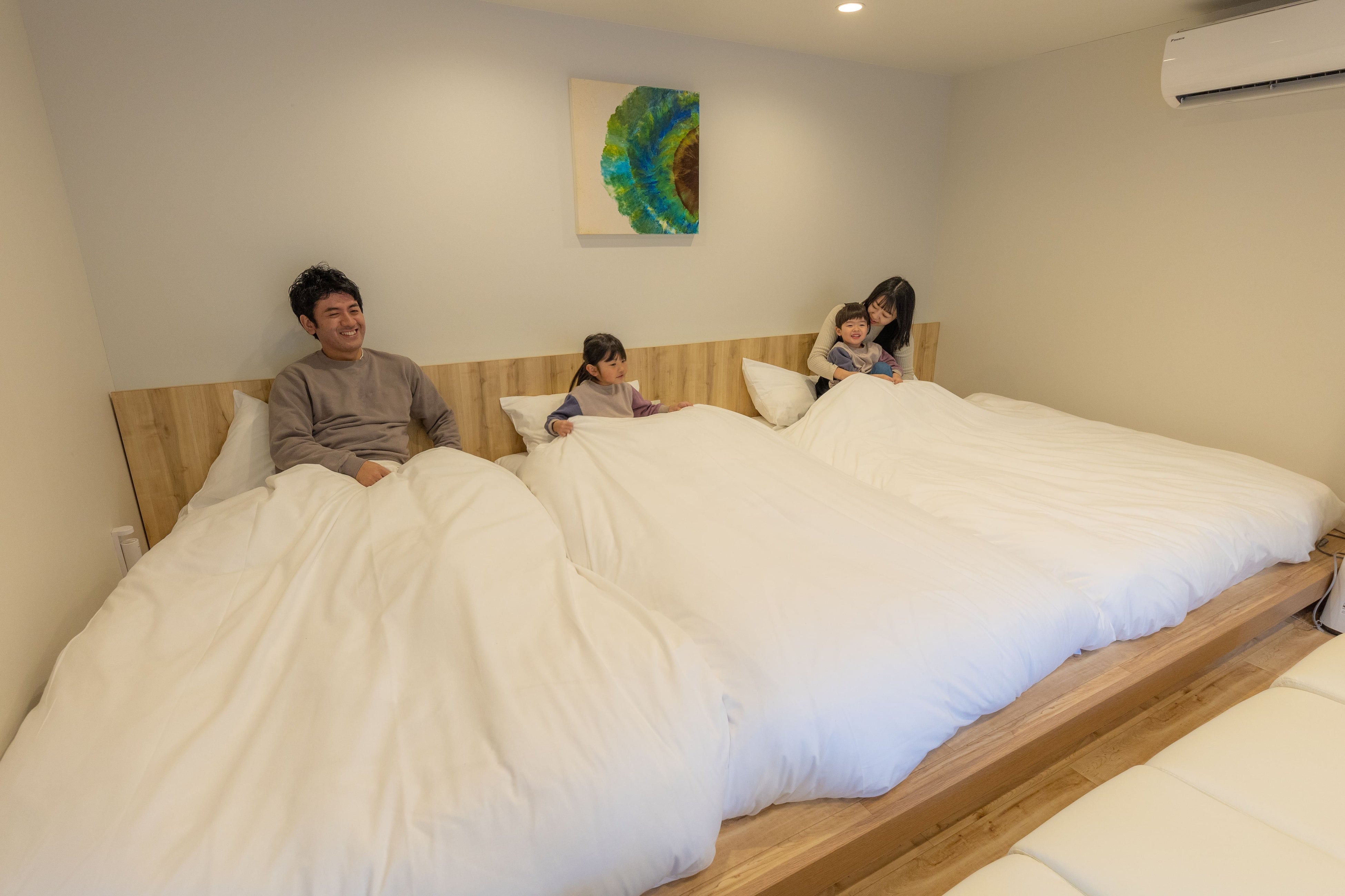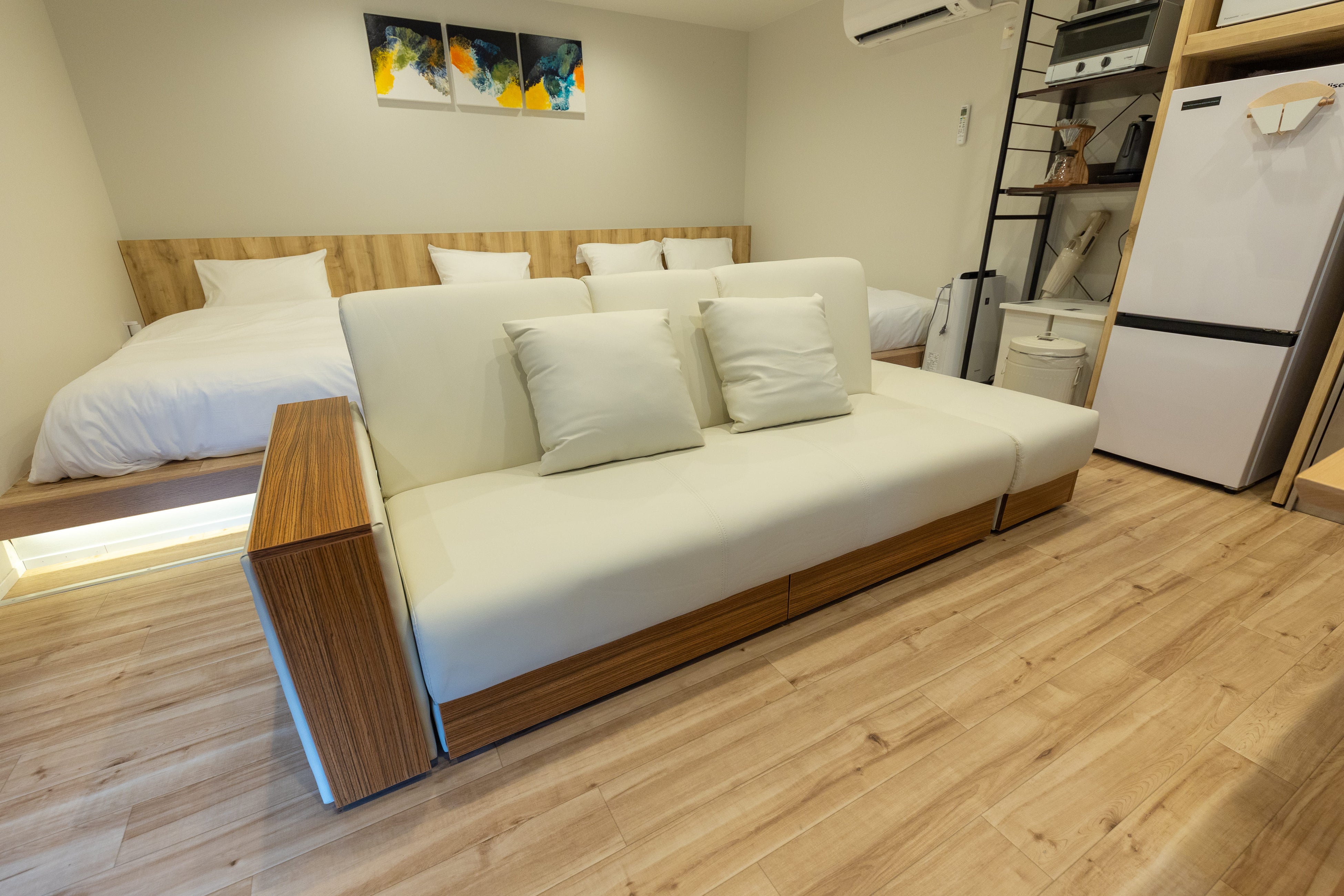 これまで「6人棟」として提供していた客室を「ファミリールーム」という名前に改め、室内でくつろげる空間が広くなるよう、インテリアに大幅な変更を加えました。他の客室でも、ソファーをソファーベッドに、ダブルベッドをシングルベッドに差し替えるなど、お客様のニーズにより適した客室に近づけました。