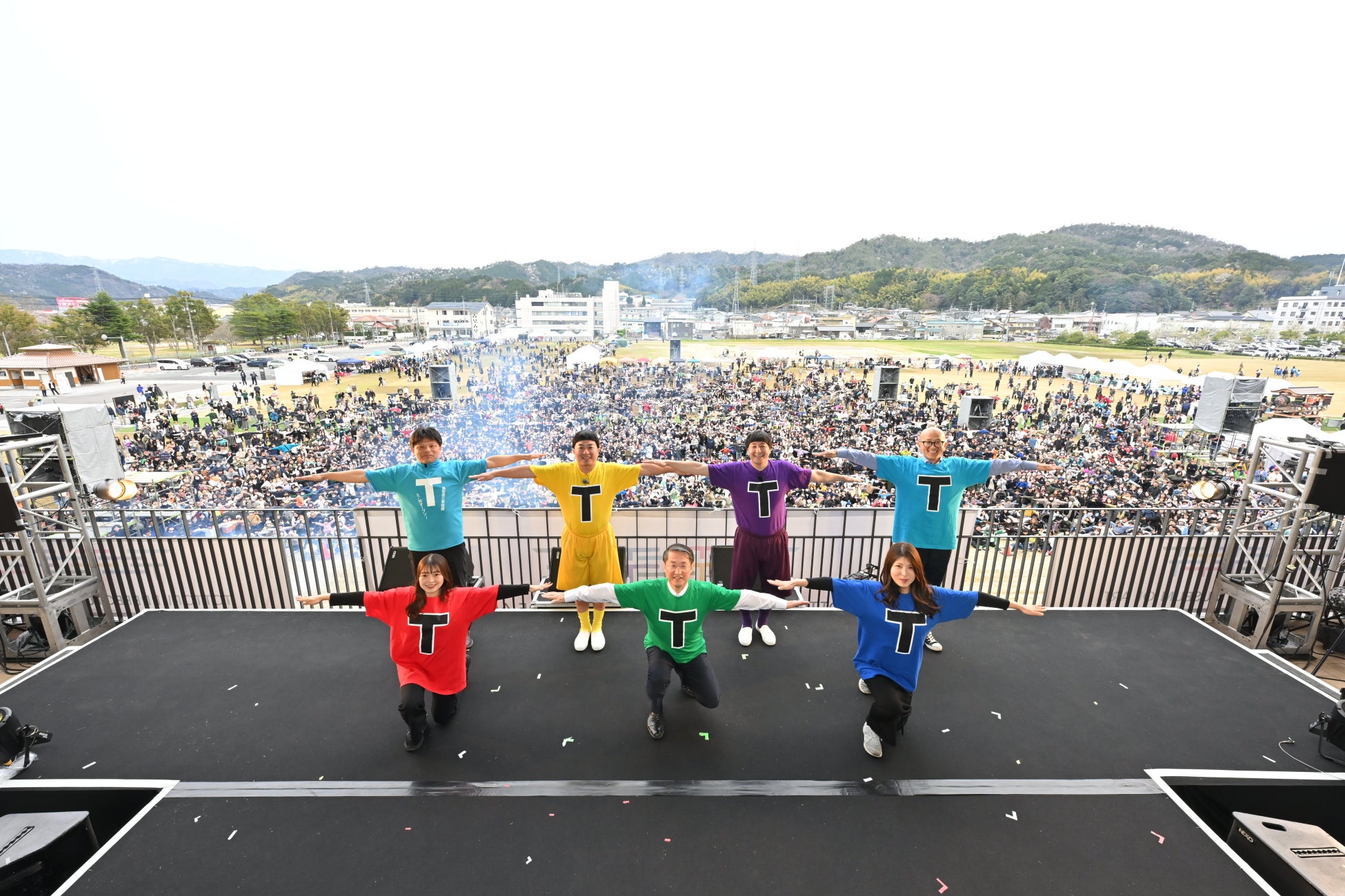 平井県知事から「鳥取県は“TTり県”に改名し、職員で“TTり県楽しみ隊”を結成して盛り上げている」ことが伝えられると、“TTり県楽しみ隊”がステージに登場。集まった会場の皆さんと一緒にTポーズをしてオープニングセレモニーを飾りました。