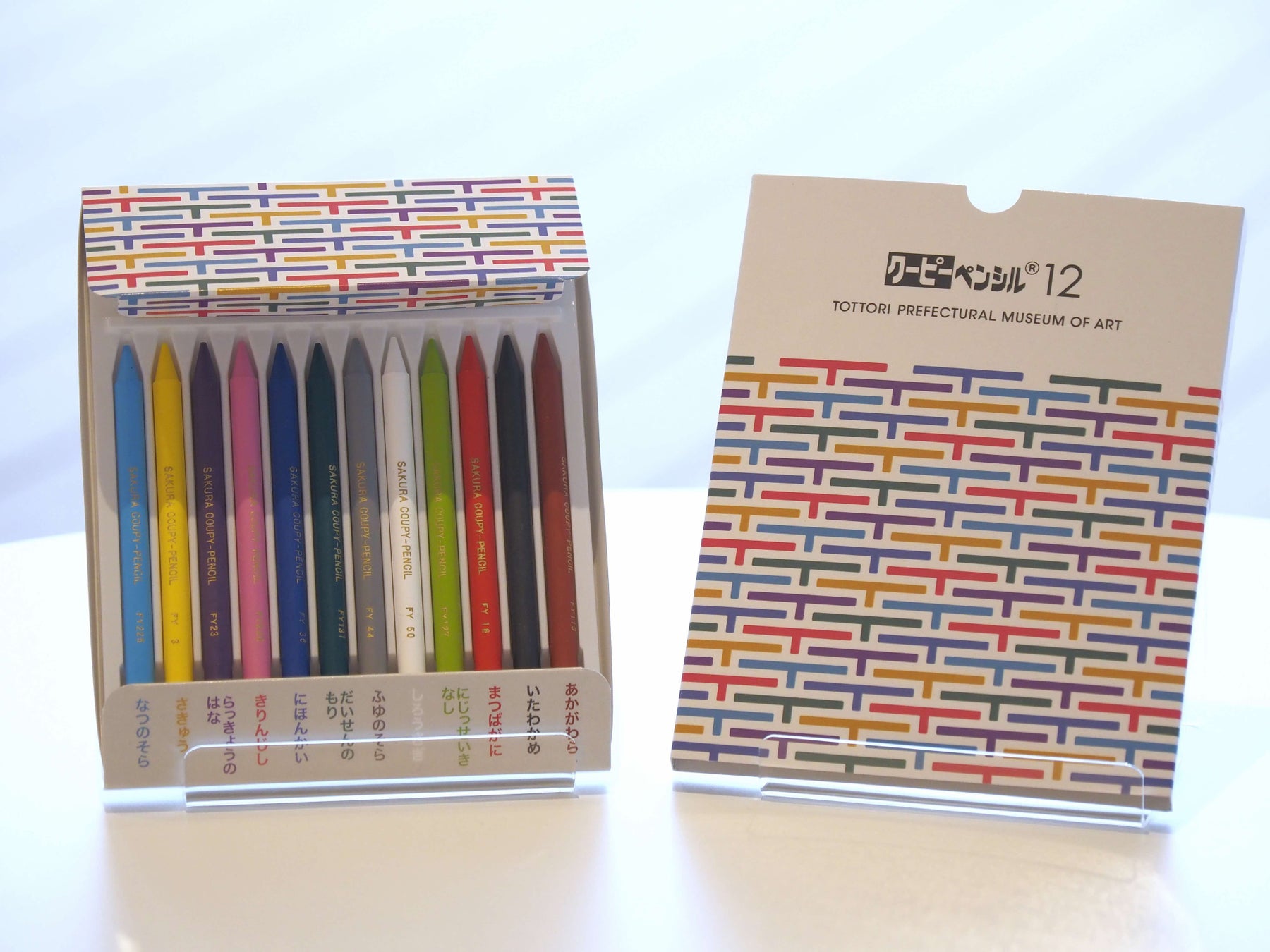 シンボルマークの6色と、「まつばがに」や「しろうさぎ」など鳥取ゆかりの6色をセットにした、12色入りのクーピーです。サクラクレパスの創業者・佐竹林蔵氏は日南町出身で、鳥取県とゆかりがあります。