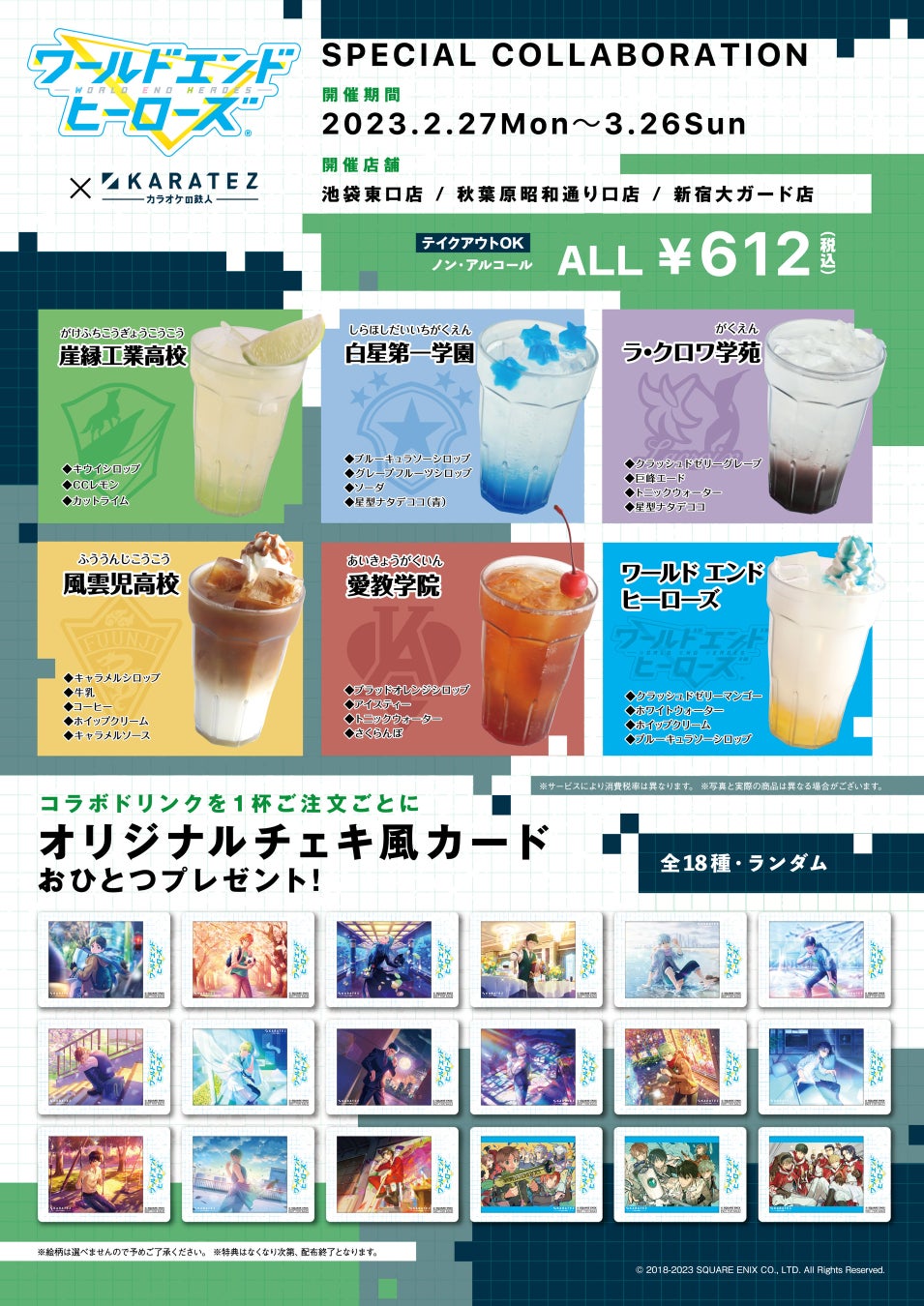 株式会社鉄人化計画(所在地:東京都目黒区、代表取締役社長:根来 拓也)は、当社が運営する「カラオケの鉄人」の首都圏3店舗において、株式会社スクウェア・エニックス(所在地:東京都新宿区、代表取締役社長:松田 洋祐)のアプリゲーム『ワールドエンドヒーローズ』との第4弾となるコラボレーションキャンペーン(以下「コラボ」)を2023年2月27日(月)より開催します。