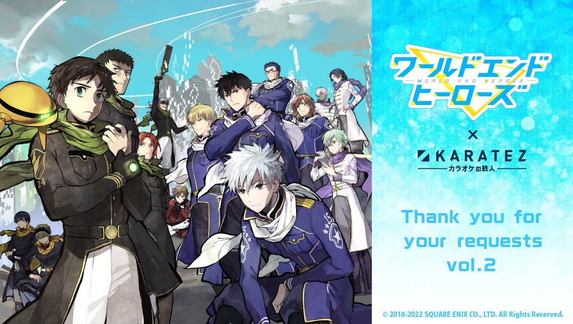 カラオケの鉄人のTwitterアカウント「カラ鉄公式アニメゲーム情報」(https://twitter.com/animegame_kt)で毎月発表する「コラボリクエストランキング」において、ファンの皆様から多くのリクエストをいただく『ワールドエンドヒーローズ』とのコラボが実現します。