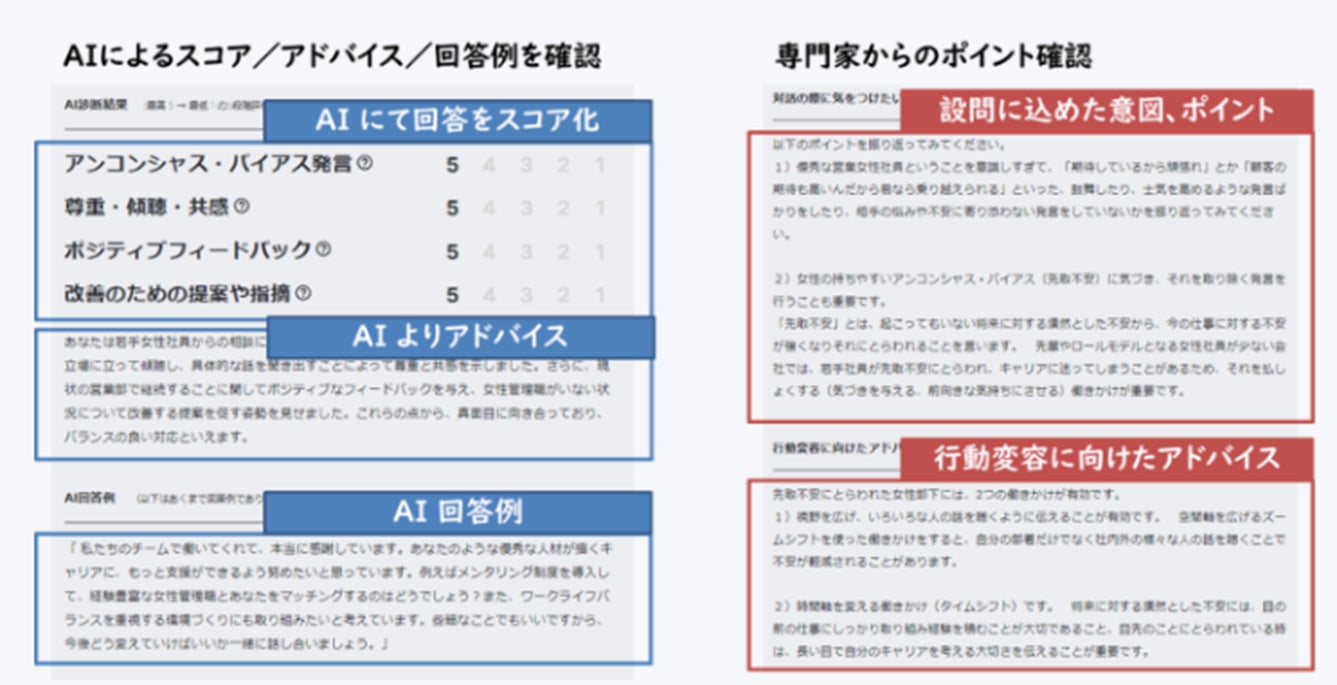 ・アンコンシャス・バイアス(無意識の偏見)の可視化:回答内容をAIが個別にフィードバック