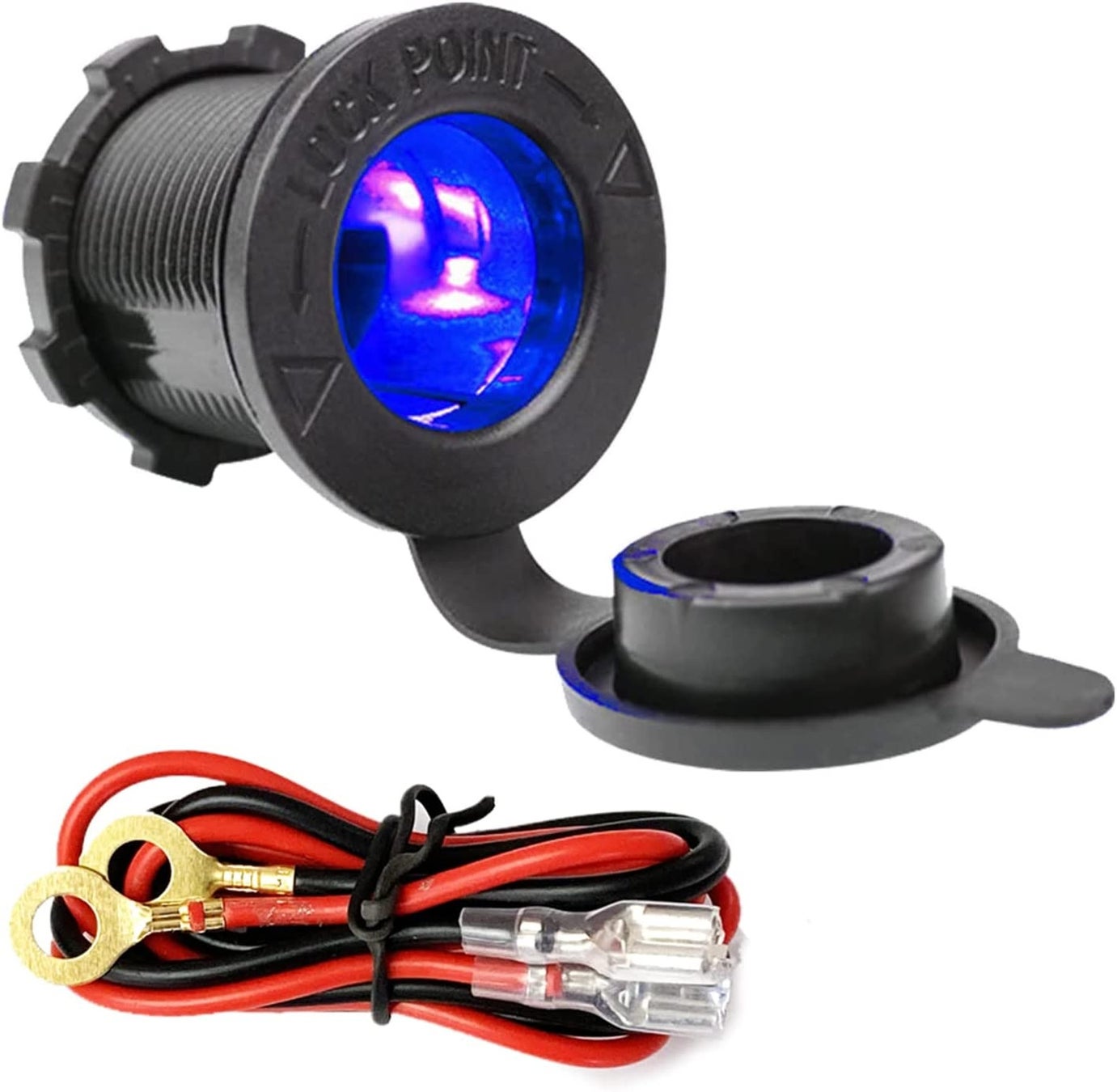 12V・24V対応の車、ボートやバイクなどに取付可能なLEDライト付き電源シガーソケット。