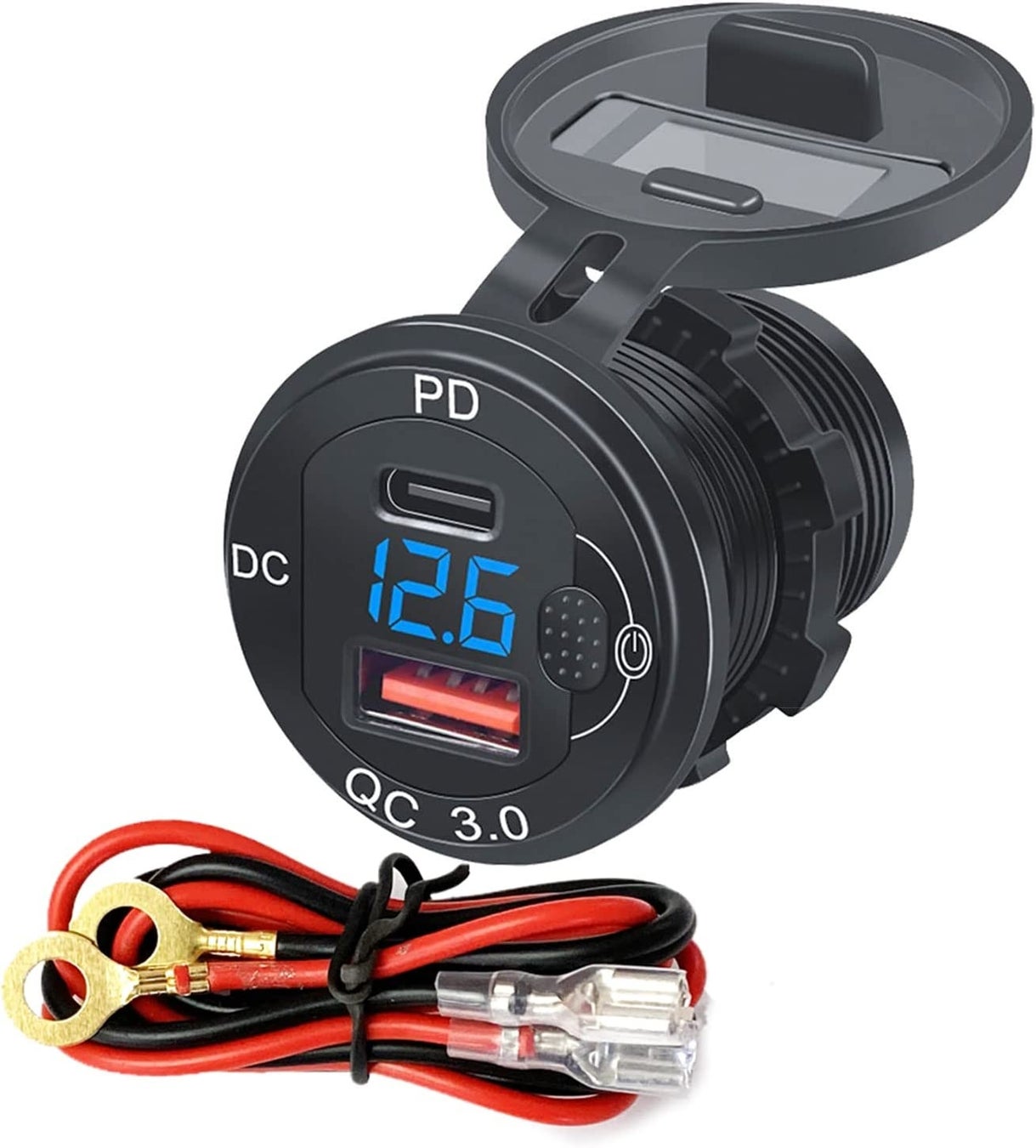 【車、バイクやボートなど、埋め込み式PD+ QC3.0USBポートチャジャー】