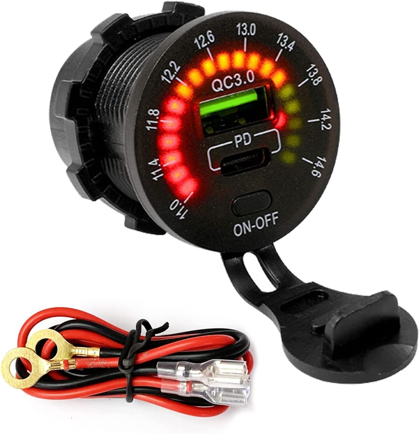【車、バイクやボートなど、埋め込み式PD+ QC3.0USBポートチャージャー】