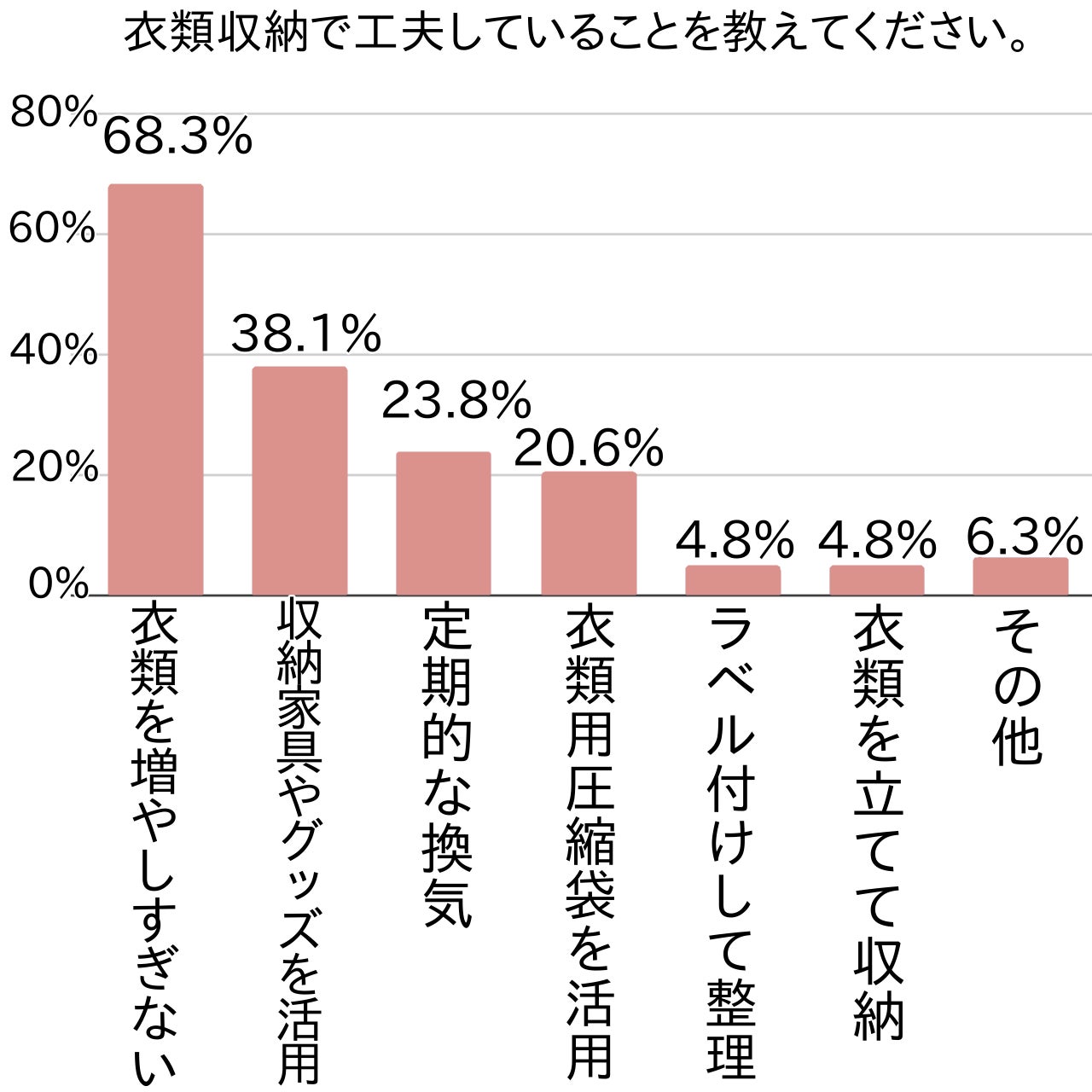 トップ3がそれぞれ約半数を占め、ハンガーラック・押入れがそれぞれ約3割でした。