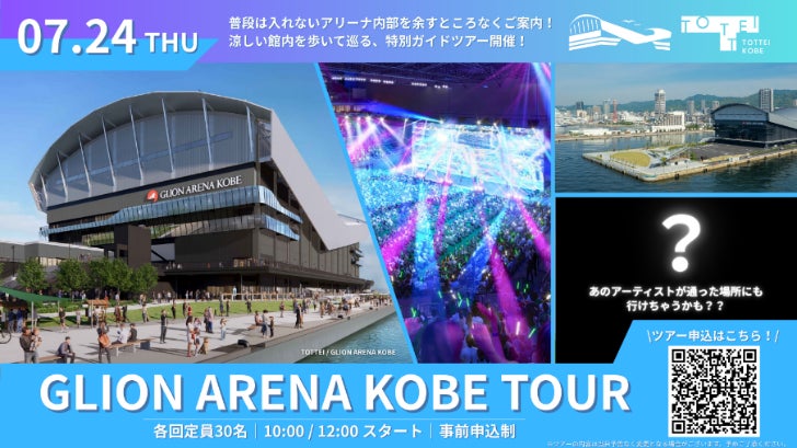 アリーナ周辺のTOTTEI / TOTTEI PARKでは、心地よい海風と80s MUSICで楽しむBEER YOGA(ビールヨガ)エクササイズ、神戸市消防・警察・海上保安庁と連携した海の日イベント、六甲山の雪遊びイベントなどを予定。涼しいアリーナ内では、館内バックヤードをめぐる「アリーナツアー」や多数のエンタメが大集合する「Gアリ納涼祭」など、夏をCOOLに楽しみつくすイベントが目白押しです。