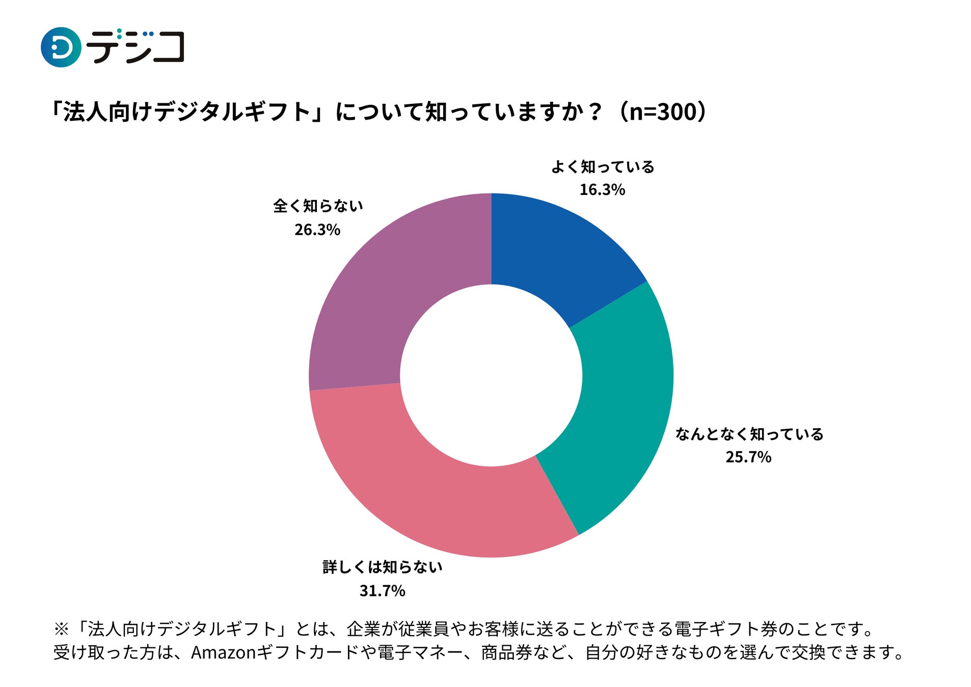 ・デジタルギフトの認知度は7割以上、一方で法人向けや福利厚生としての活用の認知度は低い。