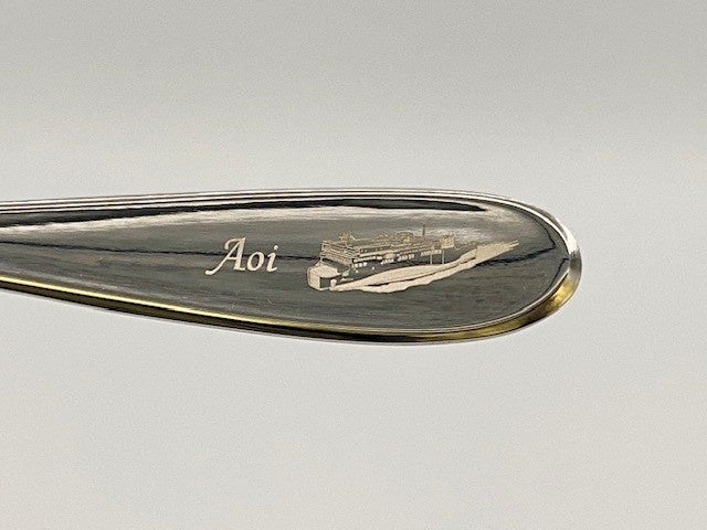 スプーンの持ち手には、水しぶきを切って進む「あおい」のロゴを、裏面には「ジャンボフェリー」のロゴをあしらっています。