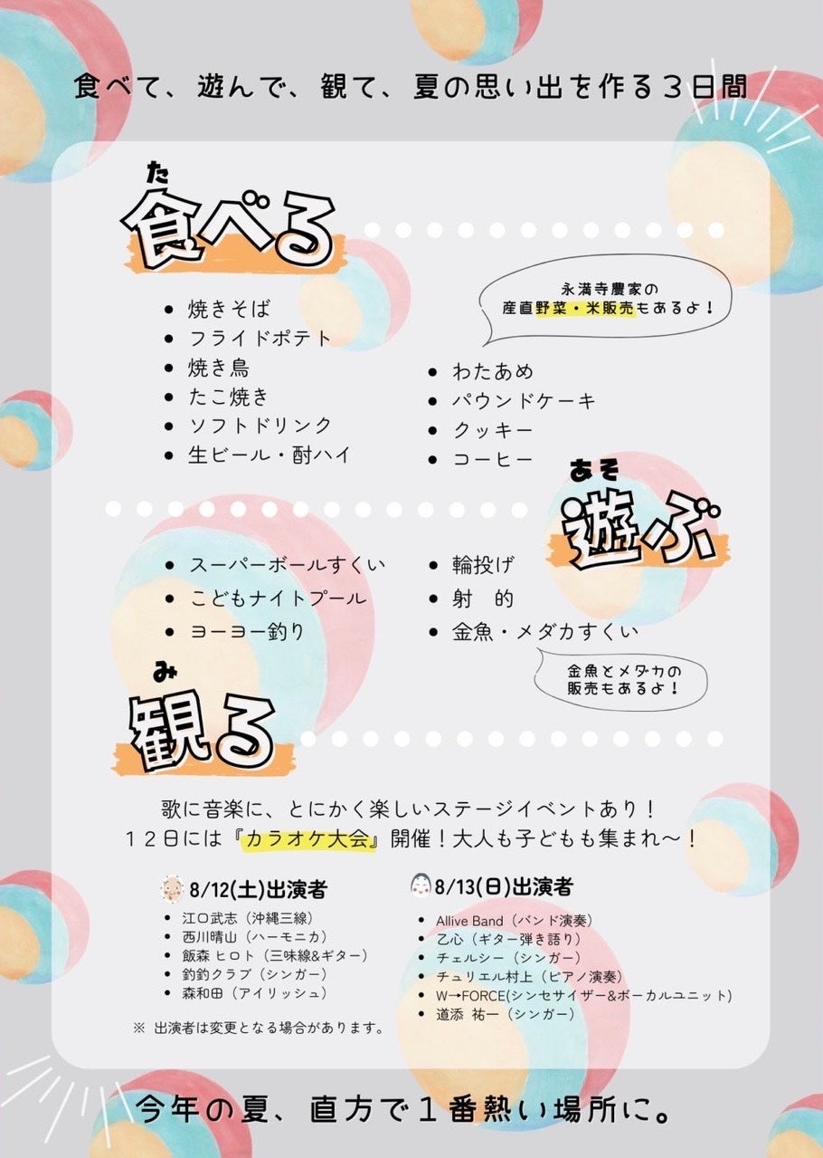 8/12(土)、8/13(日)のステージイベントには、直方で音楽活動をされている方が多数出演されます。