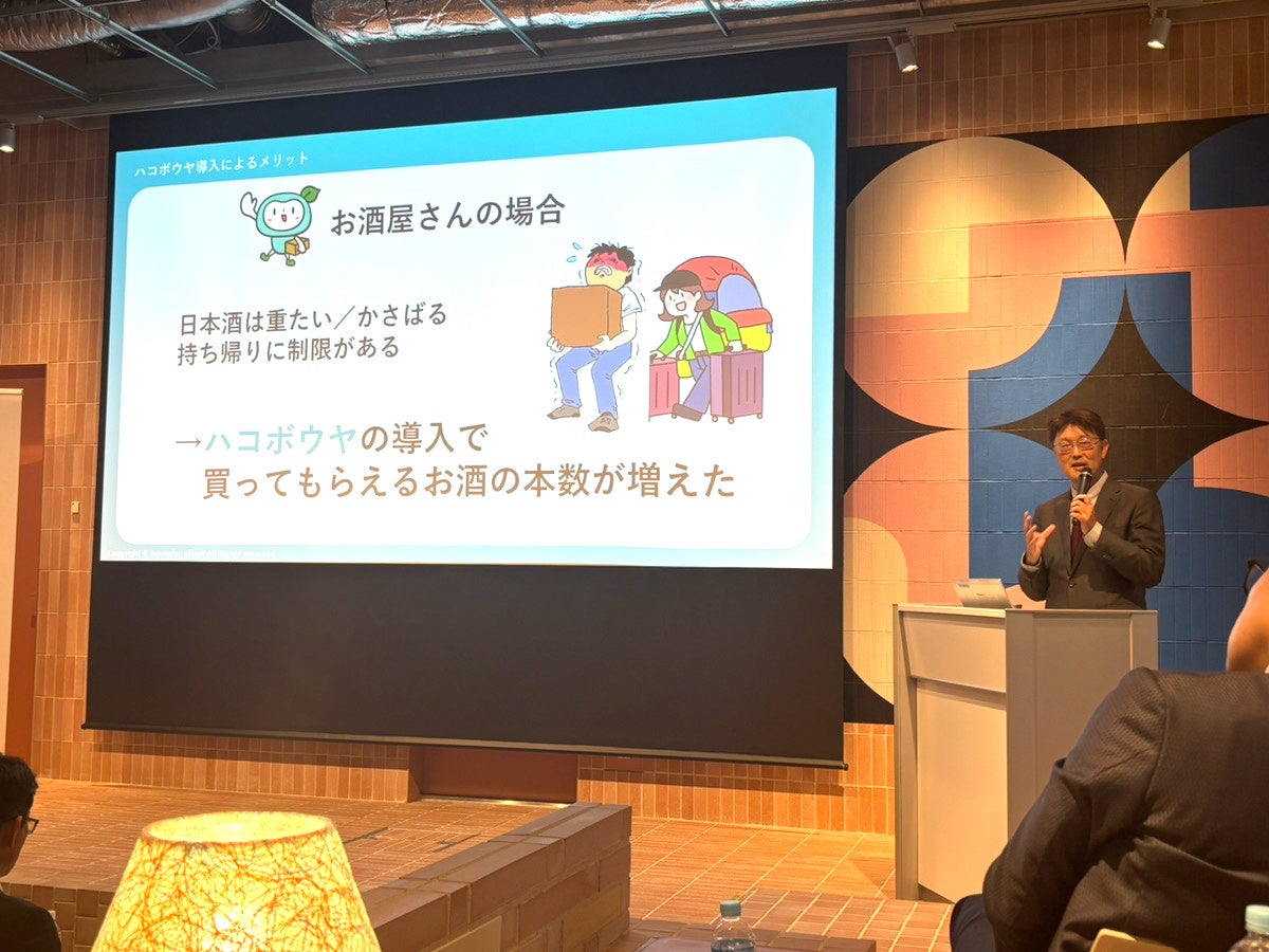 ハコボウヤを最初に導入していただいた店舗は、お酒の販売店様でした。既にインバウンドサービスを展開している販売店様でしたが、お酒という重たい商品をお土産で持って帰るのは難しいというお客様向けに、お土産が直送できるこのシステムを導入したいとのことでした。
