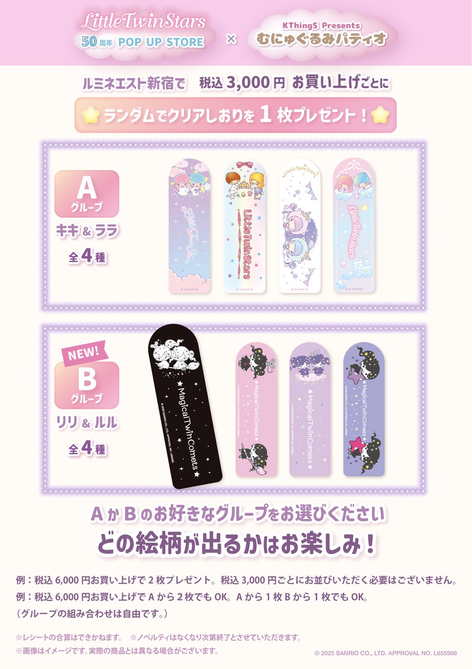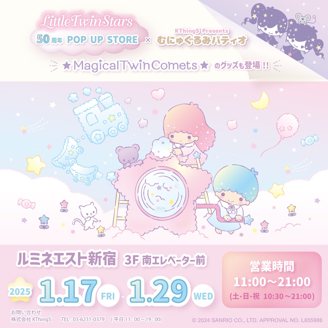 株式会社KThingS(本社:東京都中央区)の運営する「Little Twin Stars 50周年 POP UP STORE × むにゅぐるみパティオ」の期間限定ショップがルミネエスト新宿で2025年1月17日(金)~1月29日(水)の期間オープンいたします。ショップでは、様々なリトルツインスターズやマジカルツインコメッツの商品をご用意しています。