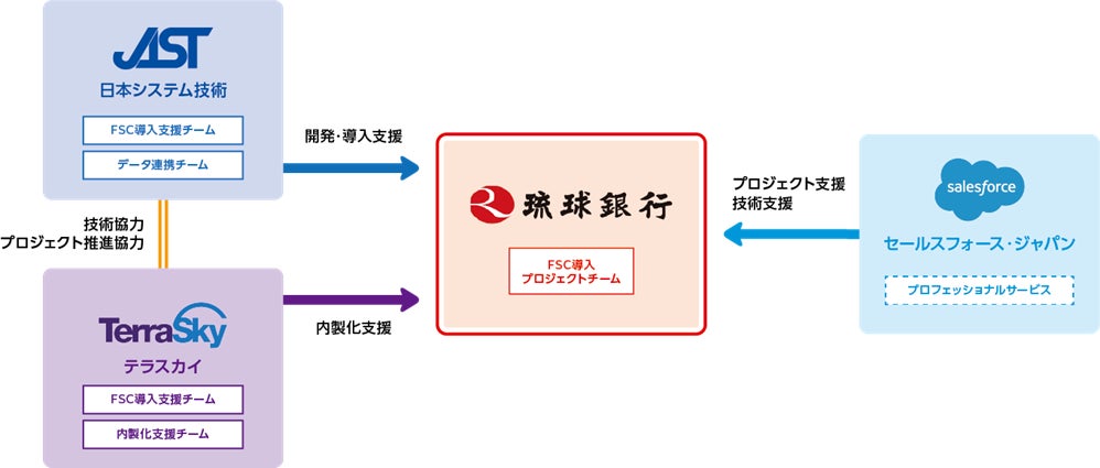 日本システム技術株式会社(本社:大阪市北区、代表取締役社長:平林 卓、以下「JAST」)は、株式会社テラスカイ(本社:東京都中央区、代表取締役CEO 社長執行役員:佐藤 秀哉、以下「テラスカイ」)との共同開発体制により、Salesforce Financial Services Cloud(以下「Financial Services Cloud」)を株式会社琉球銀行(本店:沖縄県那覇市、取締役頭取:島袋 健、以下「琉球銀行」)へ導入し、本稼働を迎えたことをお知らせいたします。