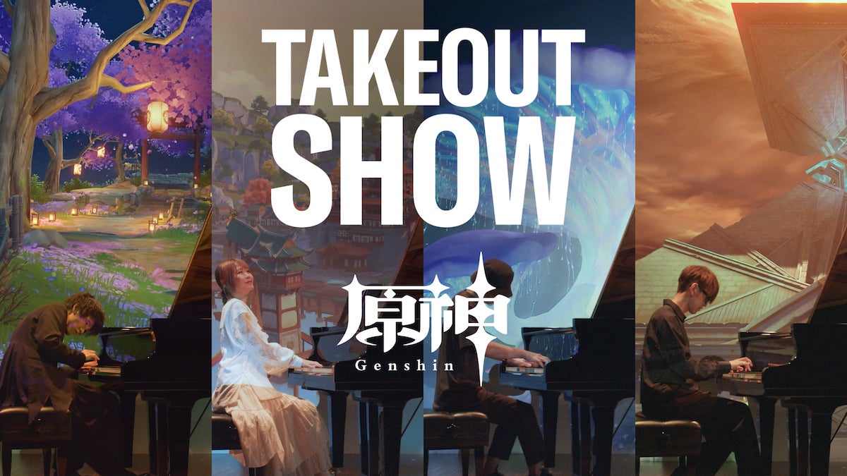 また、ヤマハ銀座店では、4名のピアニストが「原神」の楽曲をアレンジし、「原神」の映像が映し出された背景の中で、その雰囲気に包まれながら演奏する「TAKEOUT SHOW -原神- 」をスペシャル上映します。収録映像は、ヤマハ銀座スタジオならではの立体音響技術と大型3面スクリーンで上映し、見て、聞いて、テイワットの音楽世界に没入できる、ヤマハとのコラボイベントになっています。