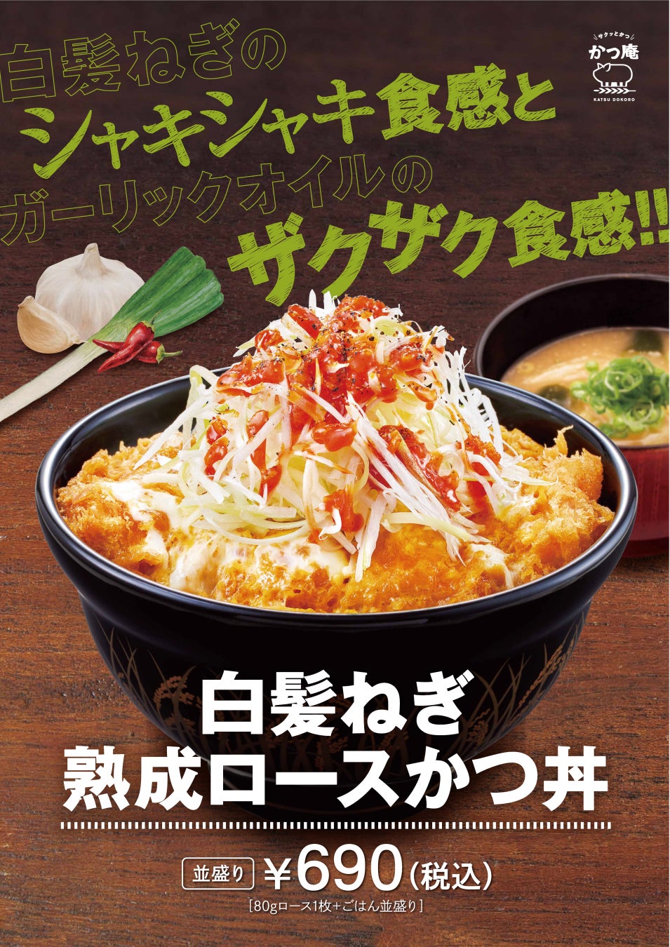 シャキシャキ白髪ねぎとガーリックオイルの旨辛な味わい!かつ庵「白髪ねぎ熟成ロースかつ丼」新発売