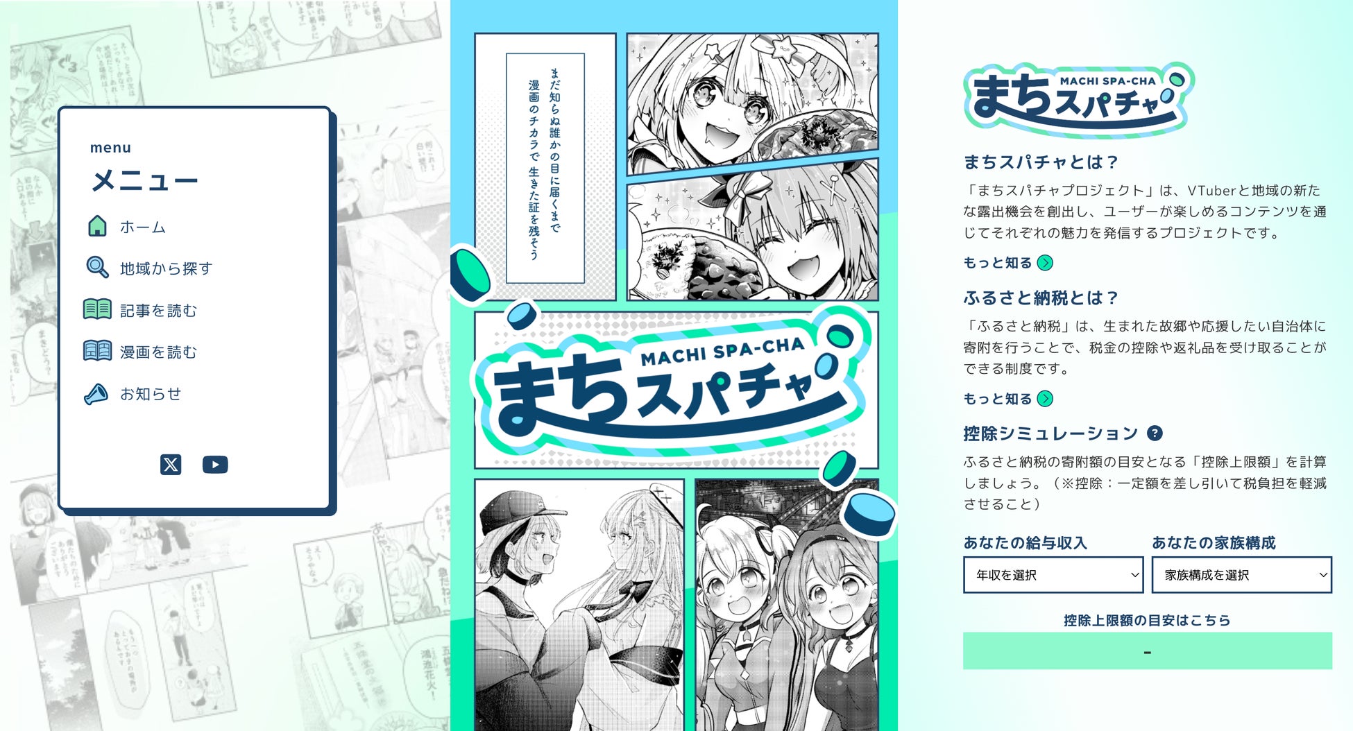 「まちスパチャプロジェクト」は、主に10代〜30代を中心としたVTuberファンに、第2、第3の地元になる「推せるまち」に出会っていただくことを目的としたプロジェクトです。地域の魅⼒を発信する漫画や動画などのコンテンツを通じて、「地域活性化」や「ふるさと納税の拡大」などに貢献する企画です。