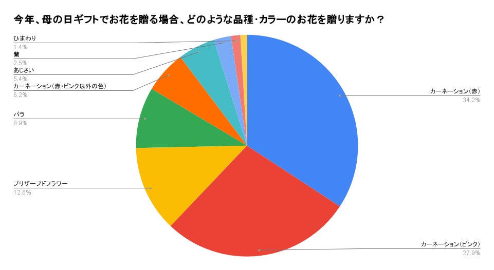 母の日カーネーションの色は、赤派 or ピンク派? 人気のフラワーギフトの好みを調査「お花の種類別・母の日ギフト人気・売れ筋ランキングTOP9」を発表!カーネーション以下は、プリザーブドフラワーが続く