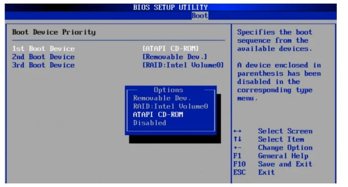 Step4:「1st Boot Device」を選択し、Windowsがインストールされているドライブを選択します。