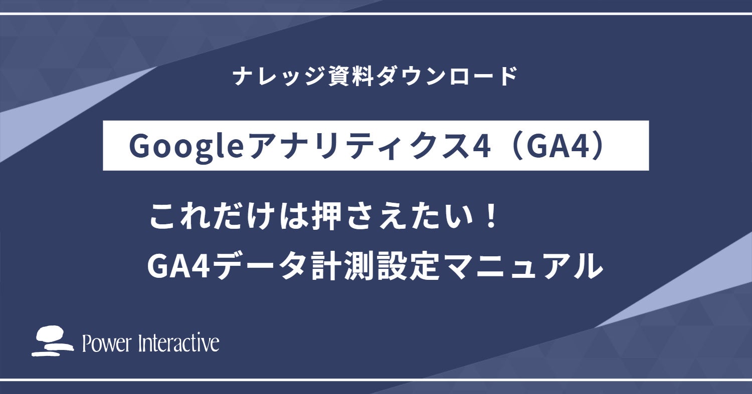デジタルマーケティングのコンサルティングを行う株式会社パワー・インタラクティブ(大阪市中央区、代表取締役:岡本充智、https://www.powerweb.co.jp/)は、『これだけは押さえたい!Googleアナリティクス4データ計測設定マニュアル』を2024年12月17日に公開しました。
