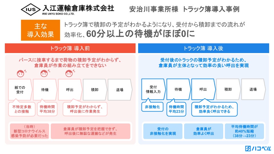 入江運輸倉庫、「トラック簿」導入で受付から積卸までの流れが効率化し、60分以上の待機がほぼ0に
