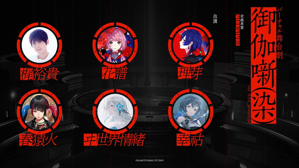KAMITSUBAKI STUDIOは、2024年8月13日(火)〜15日(木)の3日間に渡り、バーチャルシンガーである花譜・理芽・春猿火・ヰ世界情緒・幸祜と声優・梶裕貴が出演するバーチャル舞台劇「御伽噺」を上演いたします。