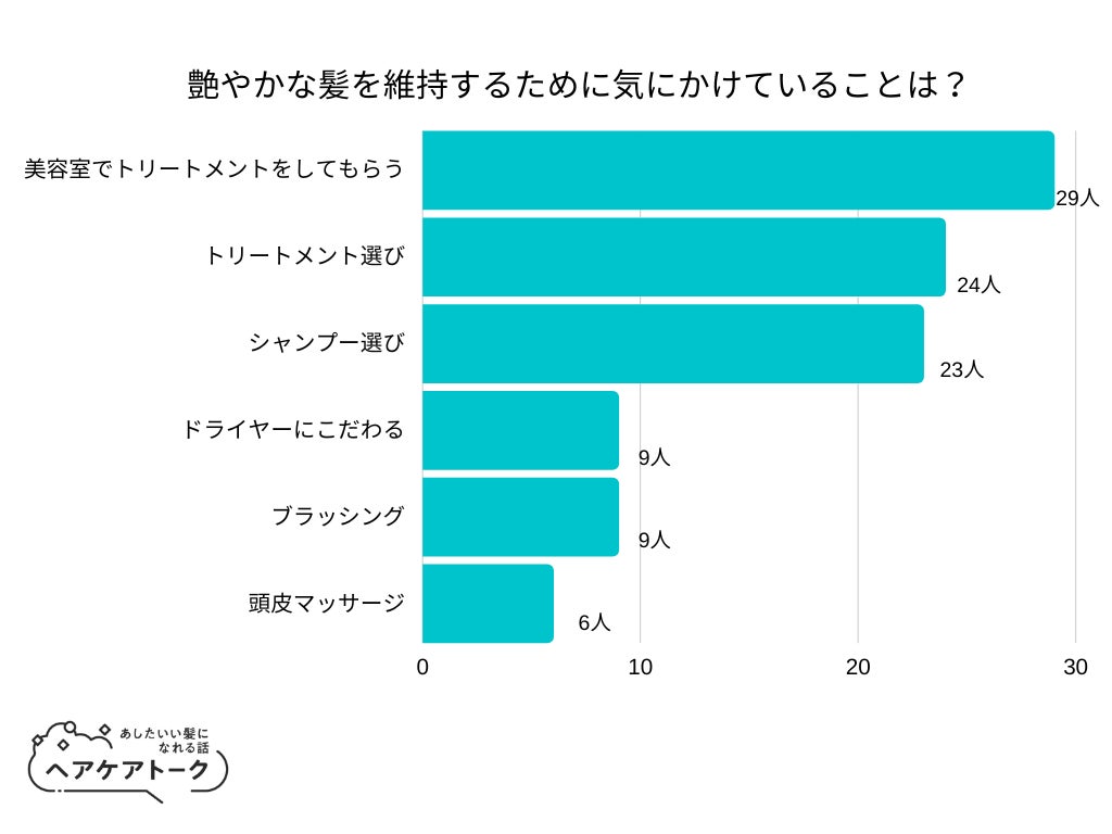 【調査レポート】艶やかな髪を維持するために気にかけていることは?1位は「美容室でトリートメントをしてもらう」でした!