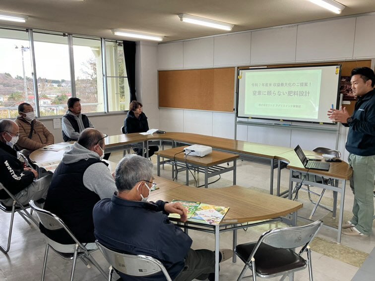“株式会社リンク”が運営する肥料事業部「アグリスイッチ」は、2024年12月17日(火)、宮城県栗原市瀬峰公民館にて、水稲の生産者の皆さまを対象とした「肥料設計セミナー」を開催しました。