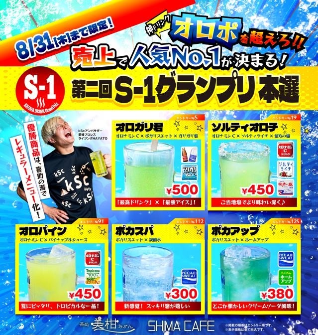 「キスケ S-1グランプリ」では、全国のサウナファンの皆さまから『オロポ』を超える次世代のサウナドリンクのレシピアイディアを募集しました。期間中に172件のレシピの応募があり。厳正な審査により5品を選び、これらの商品は「伊予の湯治場 喜助の湯」と「しまなみ温泉 喜助の湯」の2店舗で販売されました。7月7日から8月31日までの販売期間中、販売杯数が最も多かった「オロパイン」が見事、第2回 S-1グランプリ優勝に輝きました。