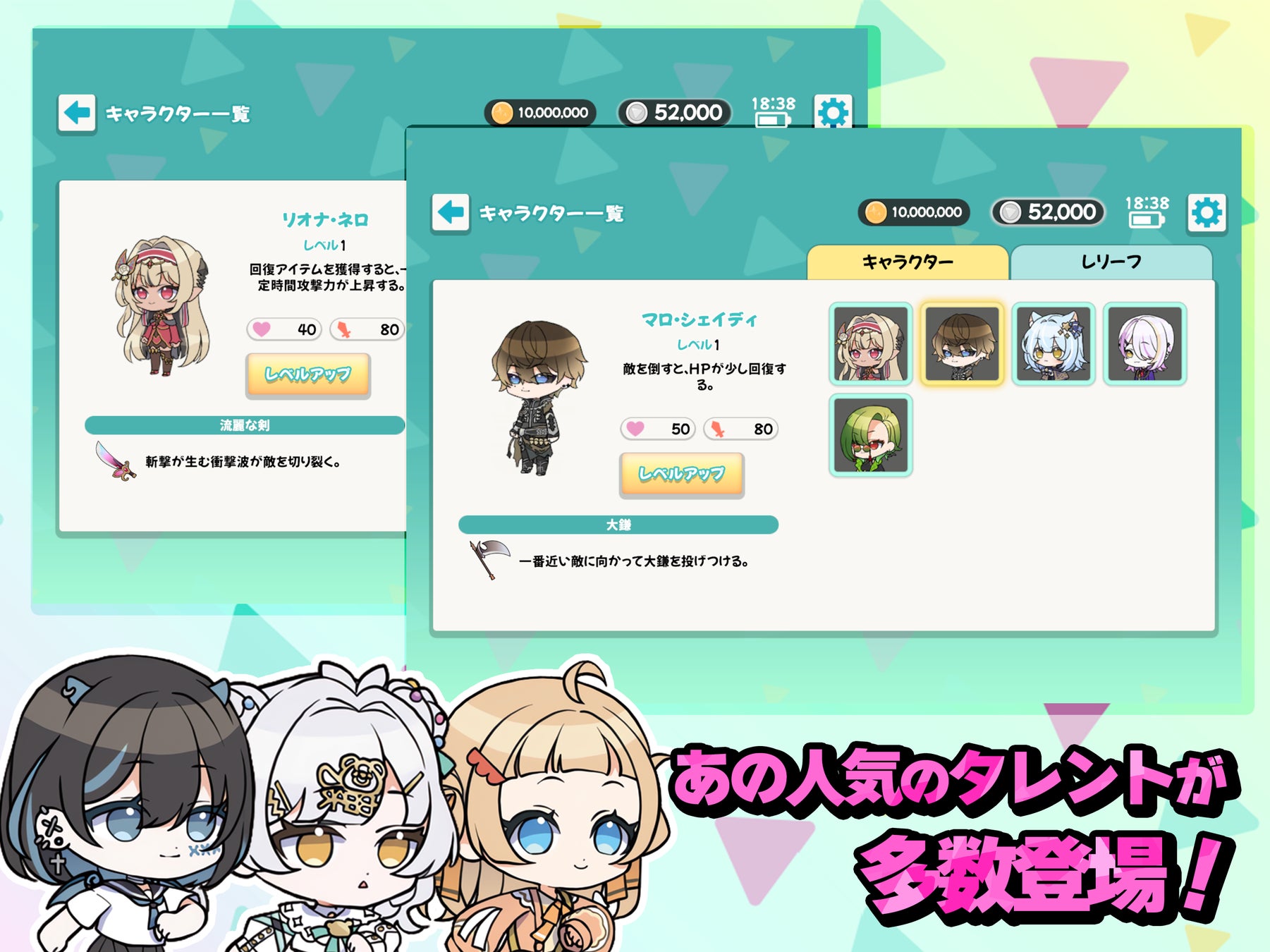 リリース後のアップデートでは、鴉紋ゆうく(@Amon_Yuuku)や桃園りえる(@riel_momozono)などの1期生なども登場予定です。