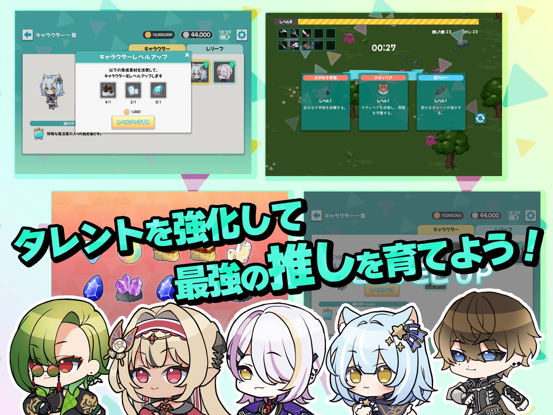 モンスターたちが迫りくるなか、自動で攻撃を繰り出すタレントを操作し生き延びましょう!