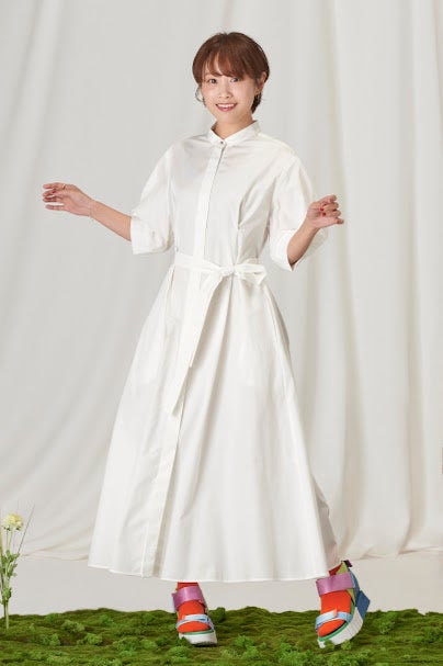 ウエストにある取り外し可能なリボンをキュッと絞ることで、メリハリをつけスタイルアップ効果が期待できます。さらに、ボタンを前開きにすることで羽織りとしても着用できる万能ワンピースです。