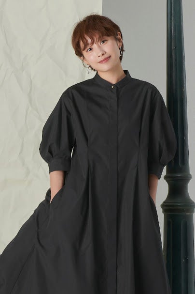袖のかわいらしいボリューム感と、裾に向かってふんわりと広がるエレガントなAラインがポイントのロングワンピースです。