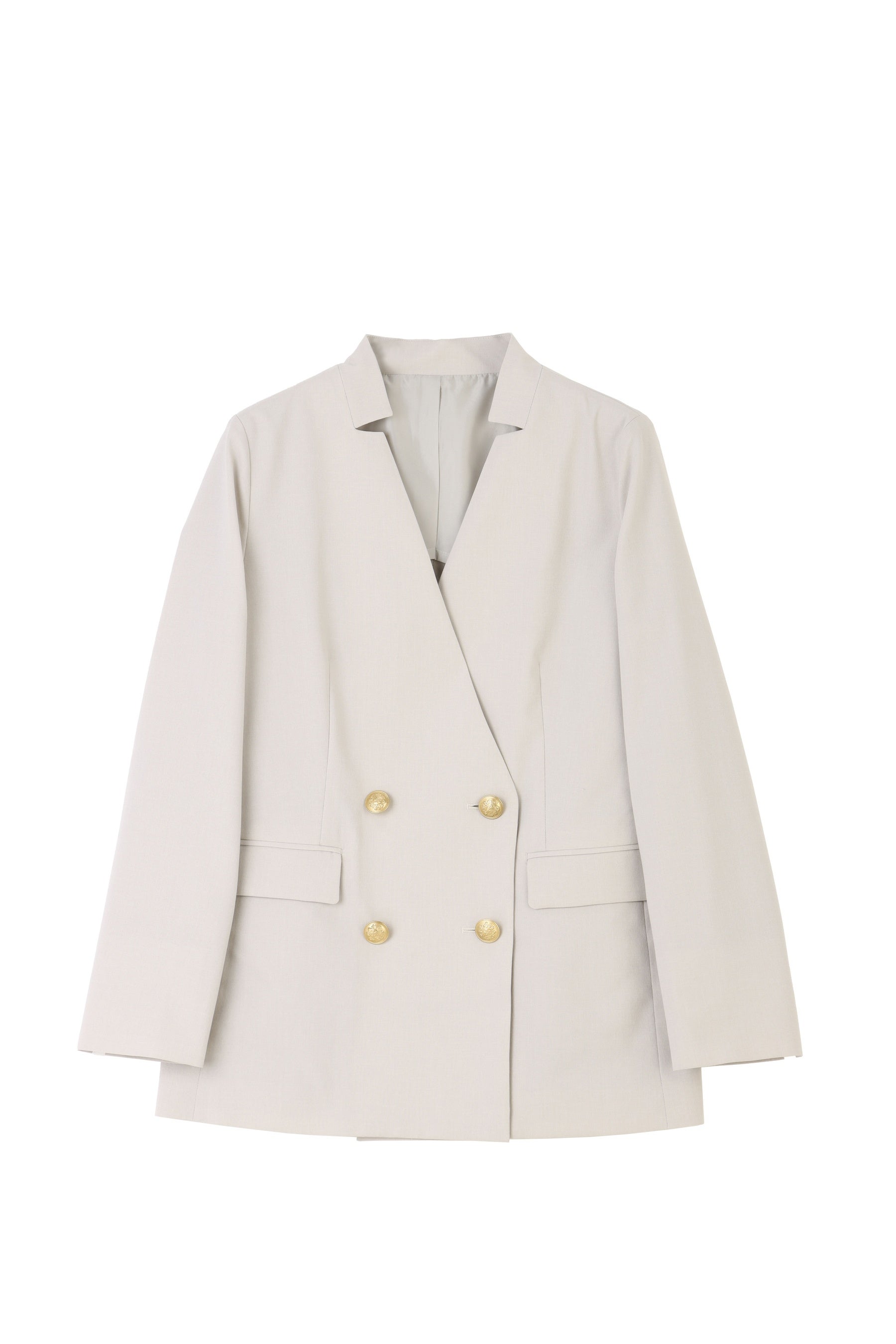 ジャケットは、きざみ衿とボクシーなシルエットが魅力で、ゴールドのボタンが映えるマニッシュなデザインです。