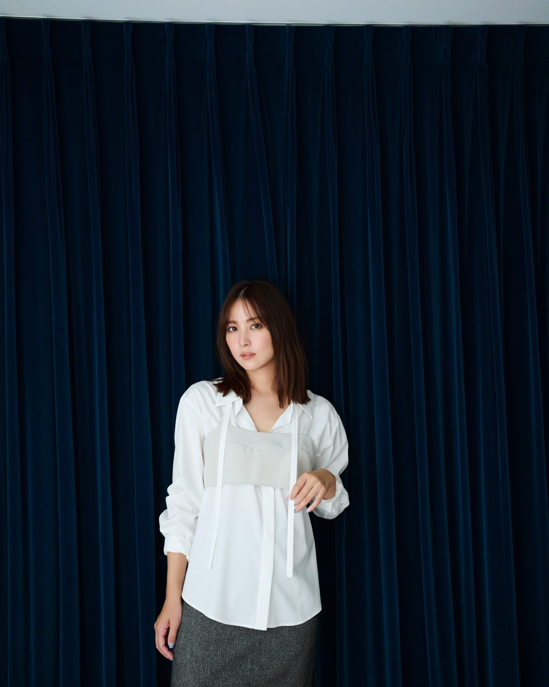 7.鮮度のあるビスチェ×シャツはツイードセットアップでシックに仕上げたい