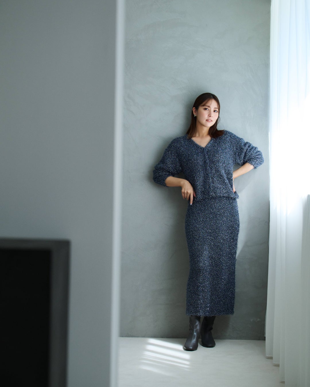 10. 纏うだけで見た目も気持ちもきらめくラメフェザーの旬顔セットアップ