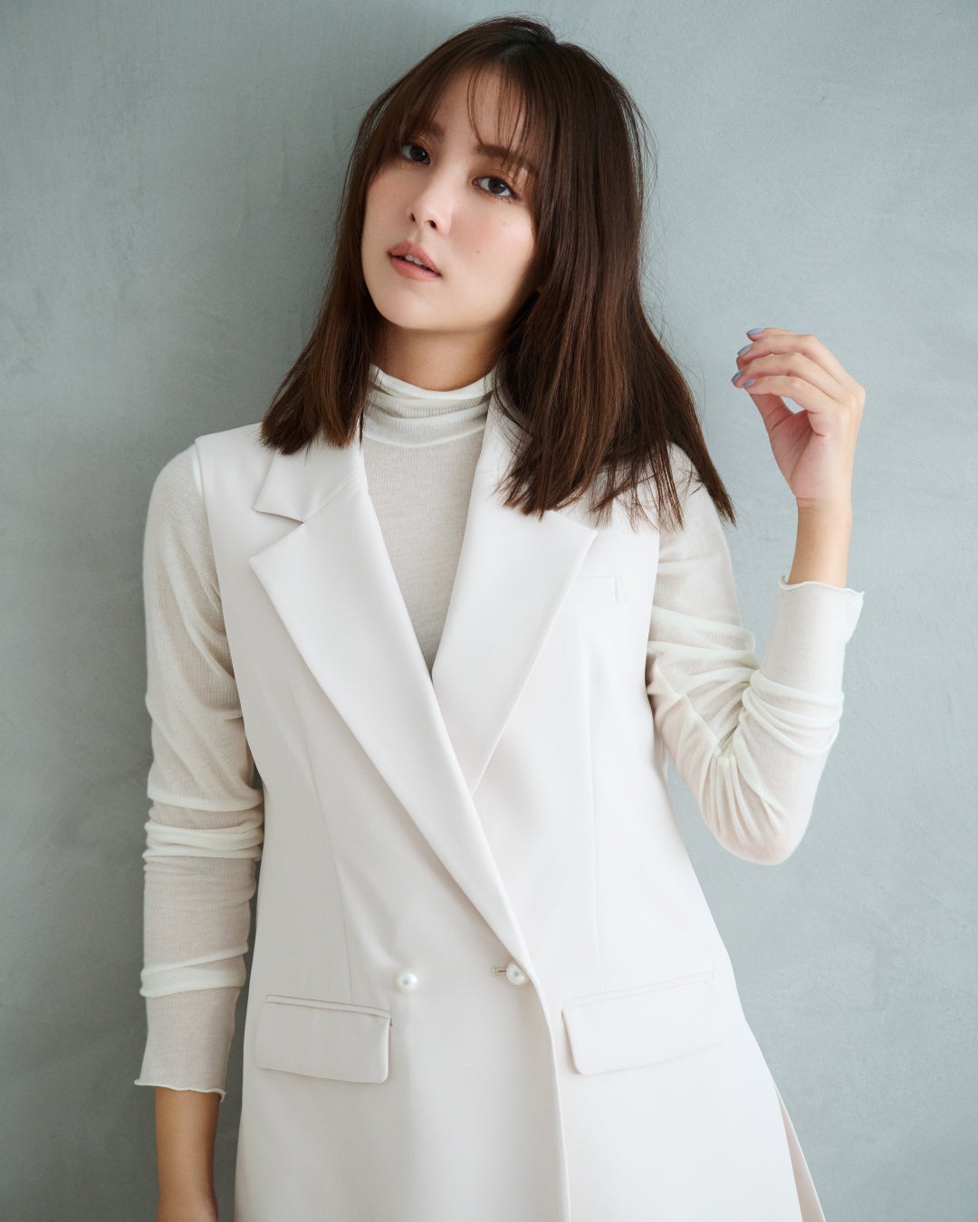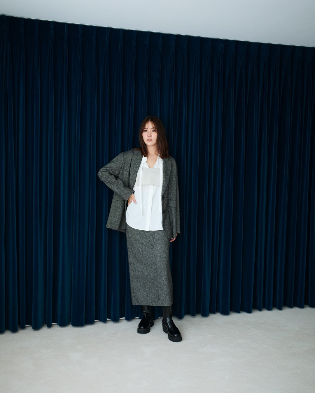 端正な大人っぽさと甘さが共存した、心浮き立つ着こなしを提案します。