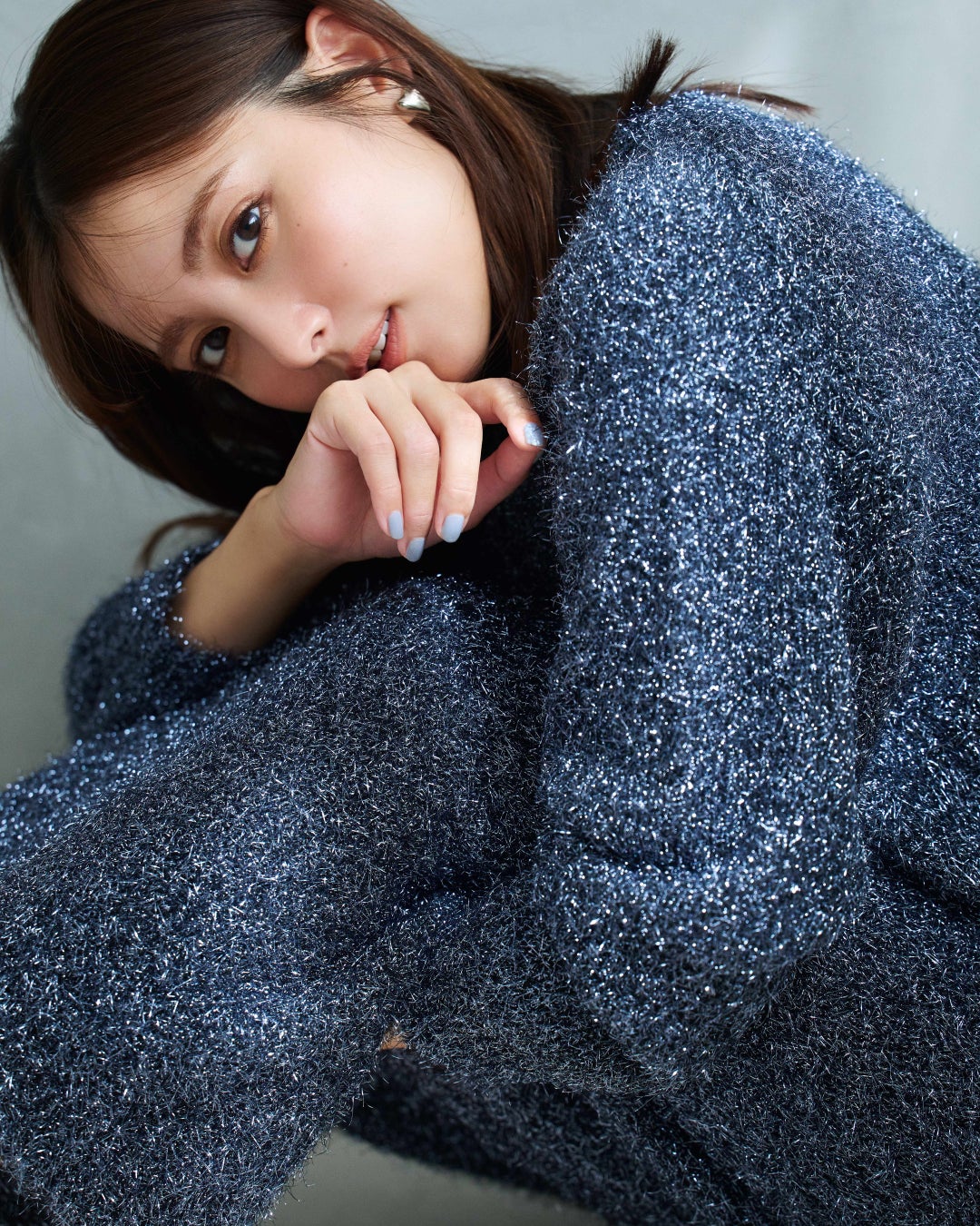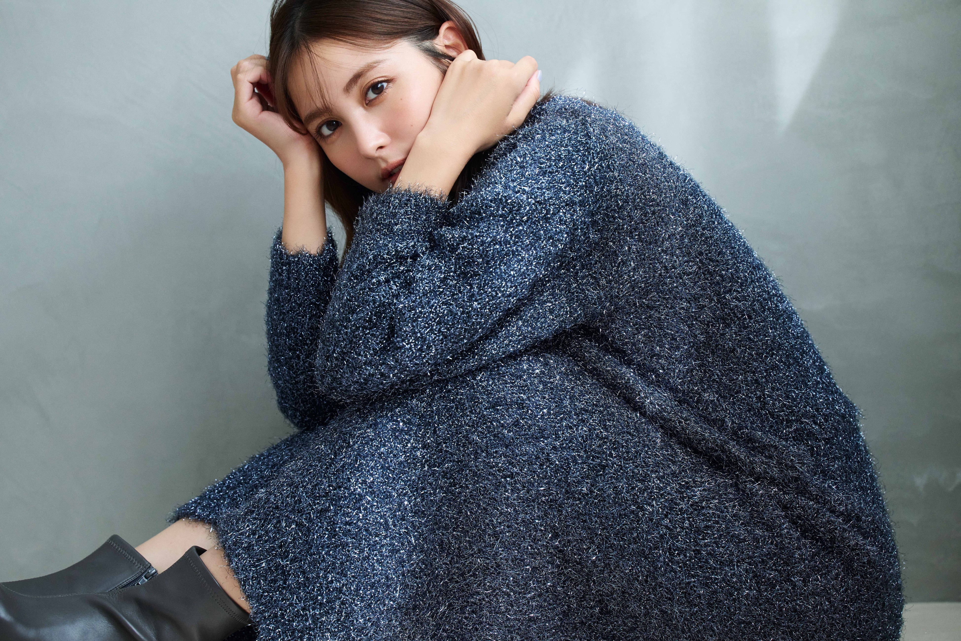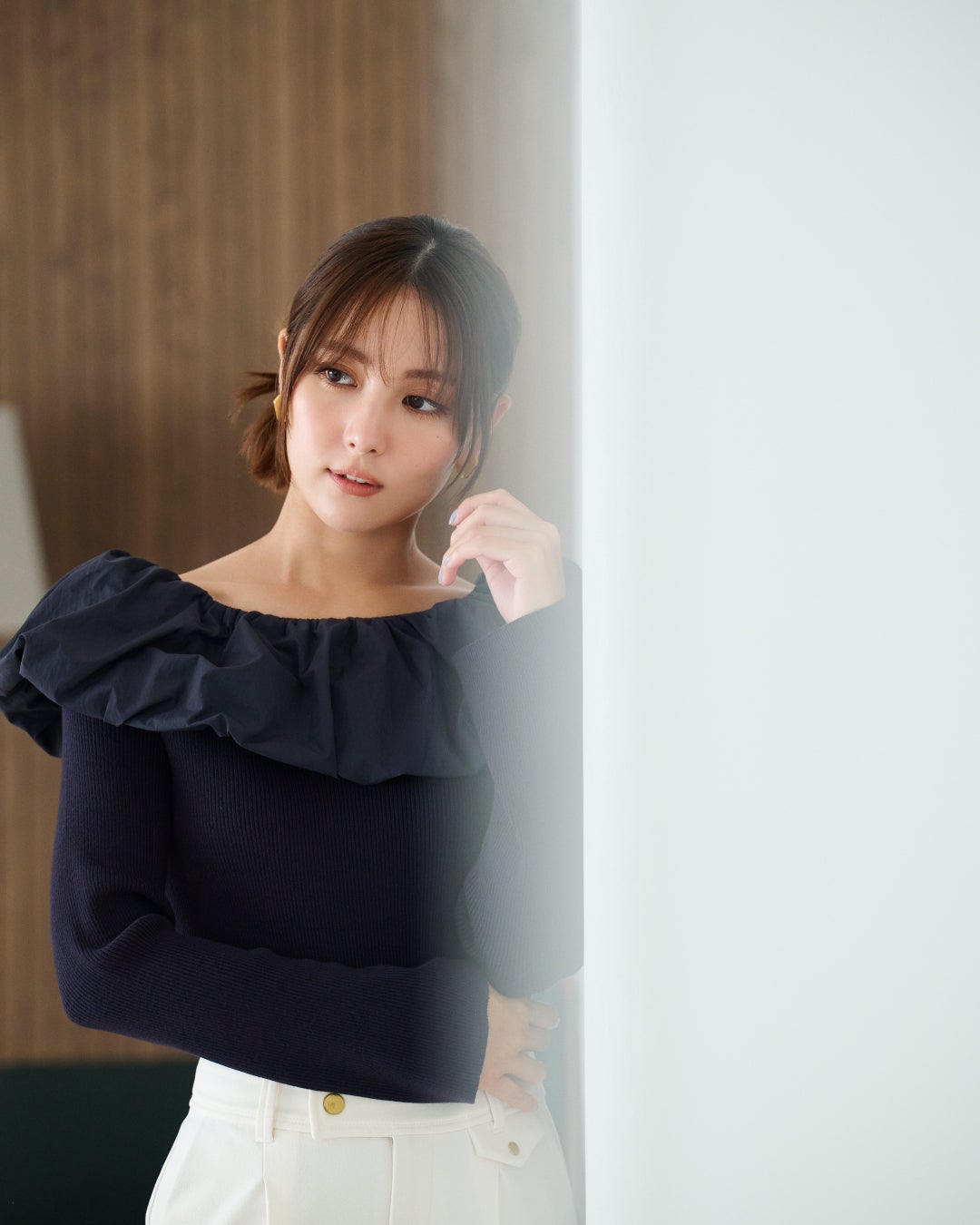 3. 存在感のあるバルーン襟が華奢見えを後押ししてくれる着映えニットを主役に