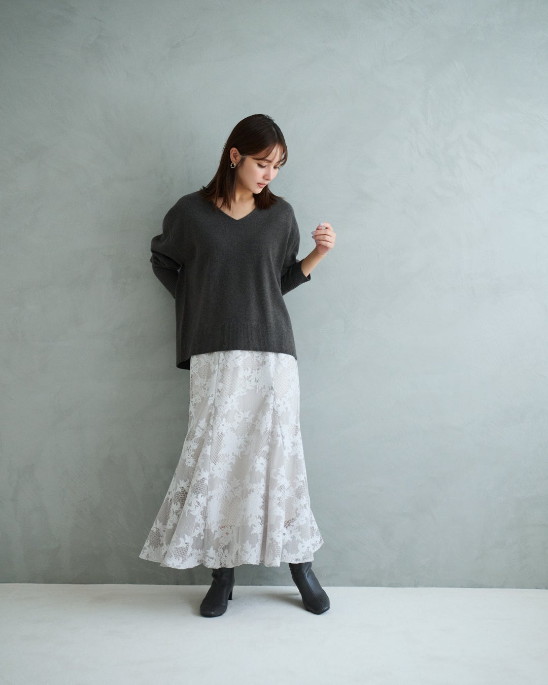 8. 柔らかで繊細な上質レースを贅沢に使用したマーメイドスカートに視線集中