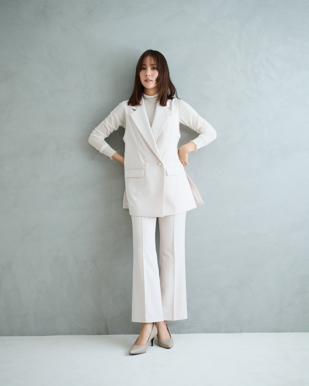 9. 暗くなりがちな秋冬にこそトライしたいホワイトコーデは端正なセットアップで