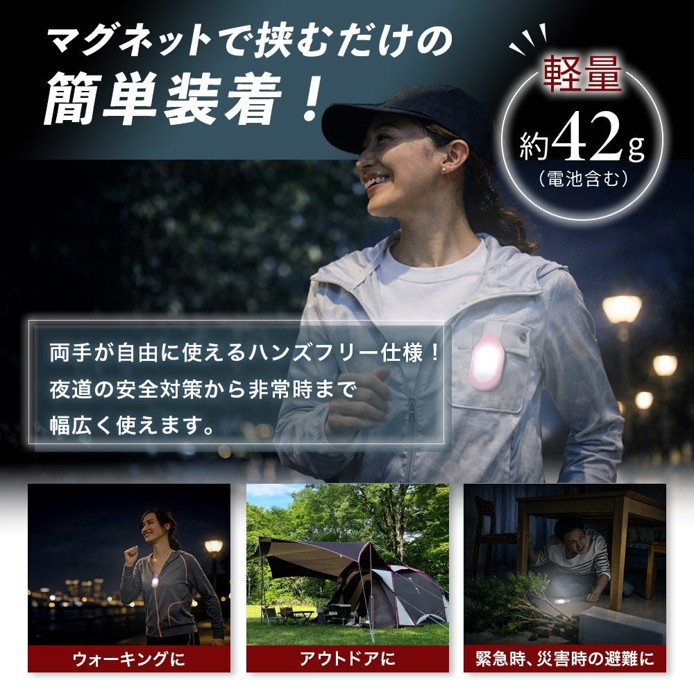 アイメディア株式会社(本社:広島県広島市、代表取締役:米又幹夫)は、服にマグネットで挟むだけで両手が自由になり、夜間の外出や災害時の備えとして暮らしの安心をサポートする「LED手ぶらライト」を2026年3月より公式WEBショップにて発売中です。