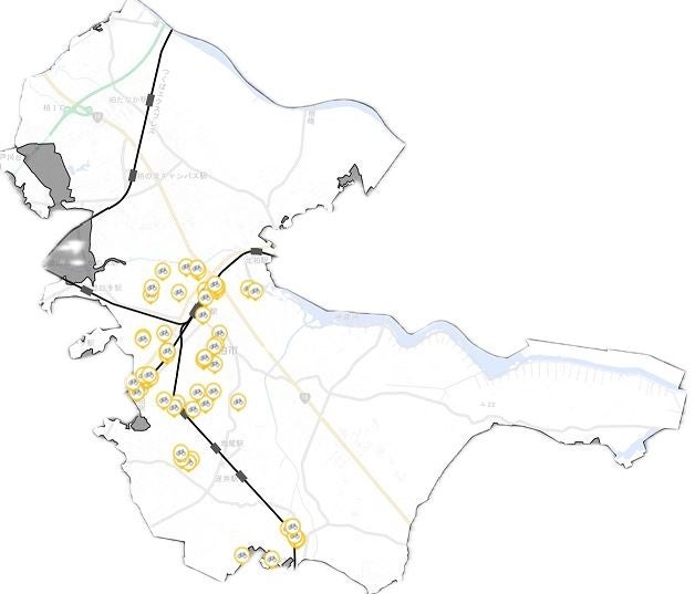 サービス開始時は、柏駅を中心とした以下駅周辺の公共施設に55ヵ所のステーションを設置します。